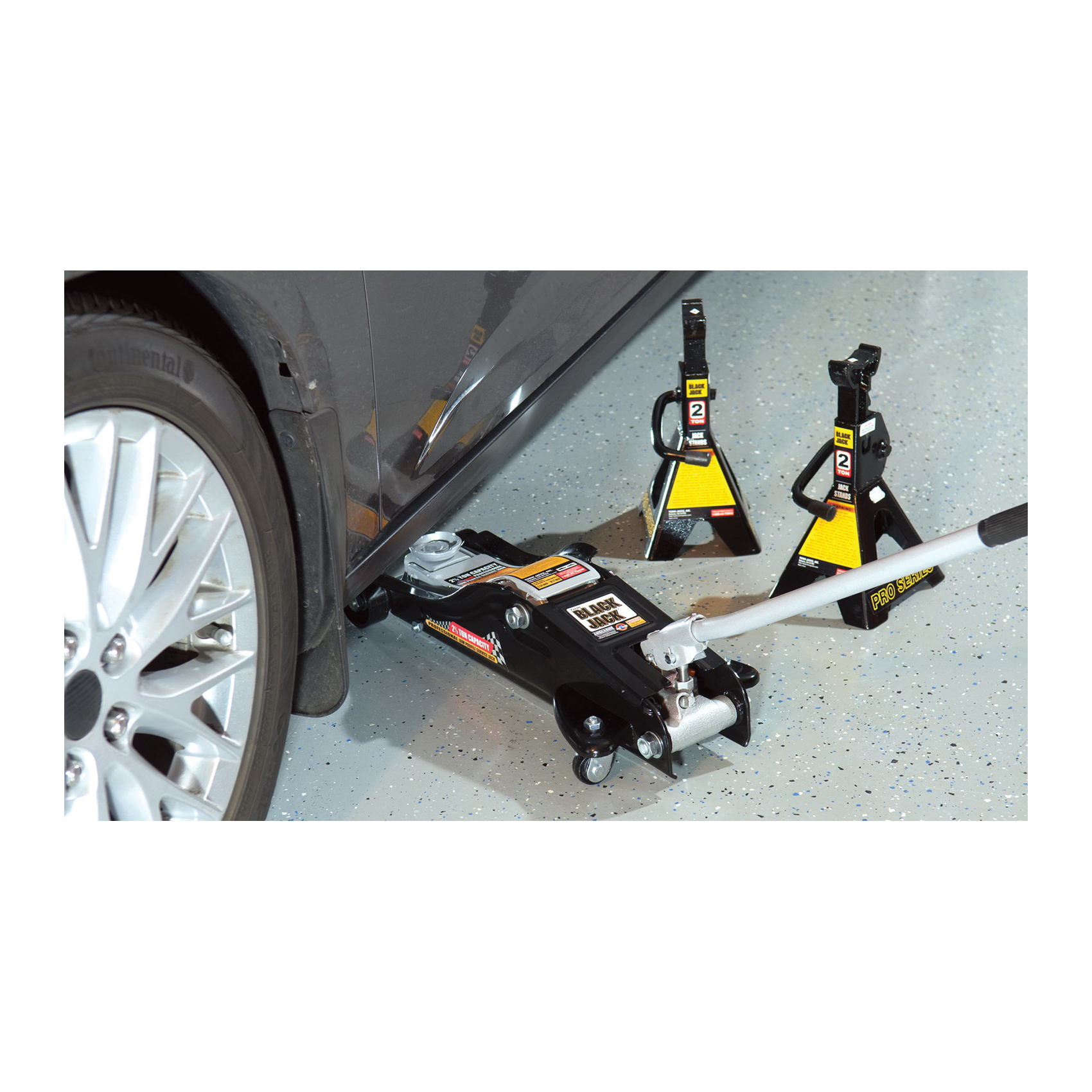 Torin Blackjack Service Jack, Low Profile, 2.5 ton Weight, Lift Range: 3-1/2 to 13-7/8 in, Removable Handle, Steel