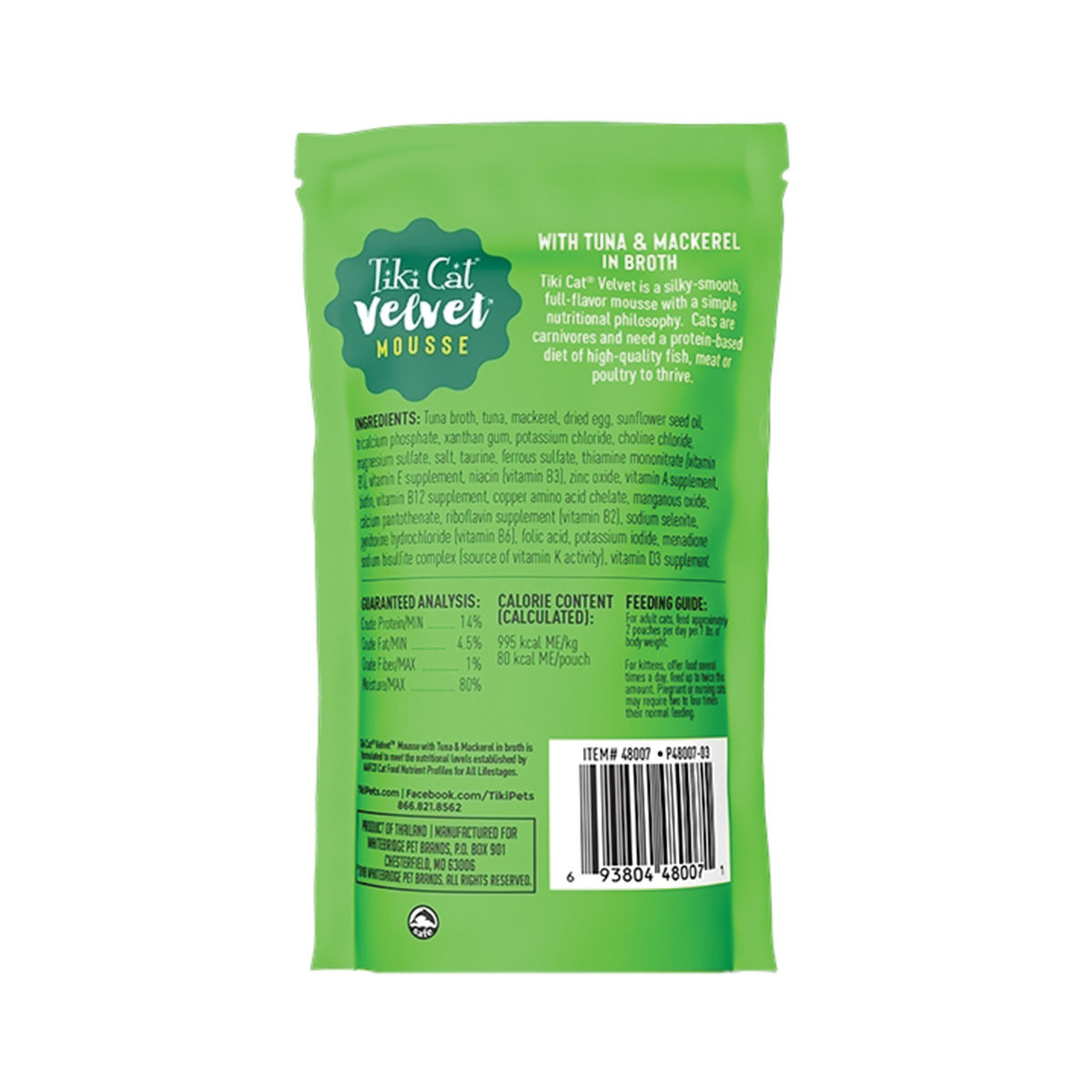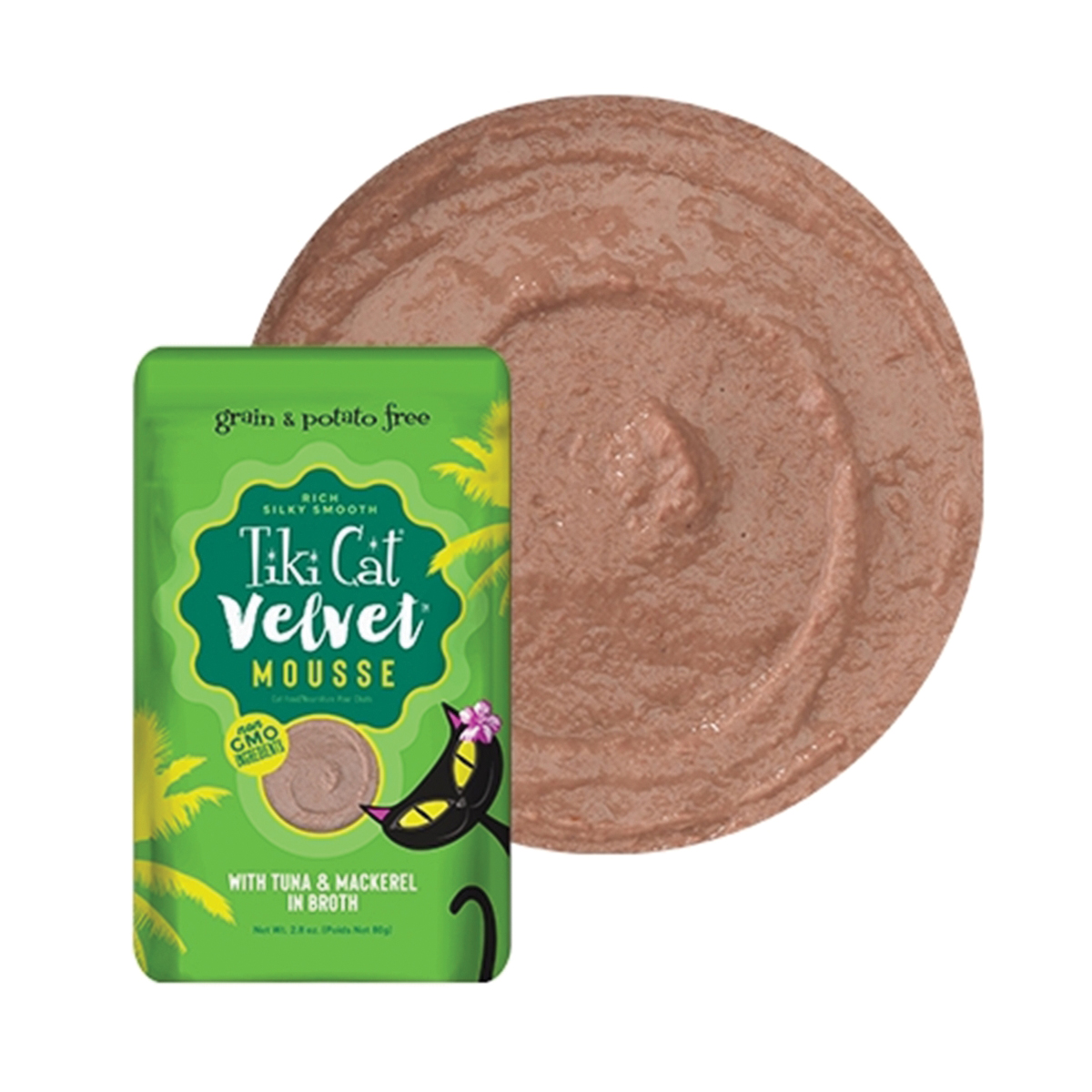The seafood flavors cats love, with wild-caught tuna, mackerel, tuna broth and sunflower oil blended into a delicious mousse.