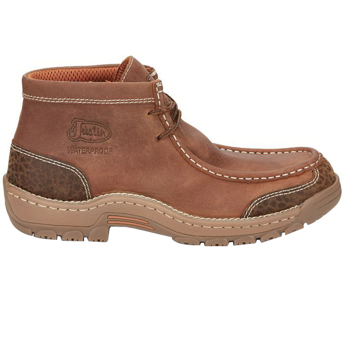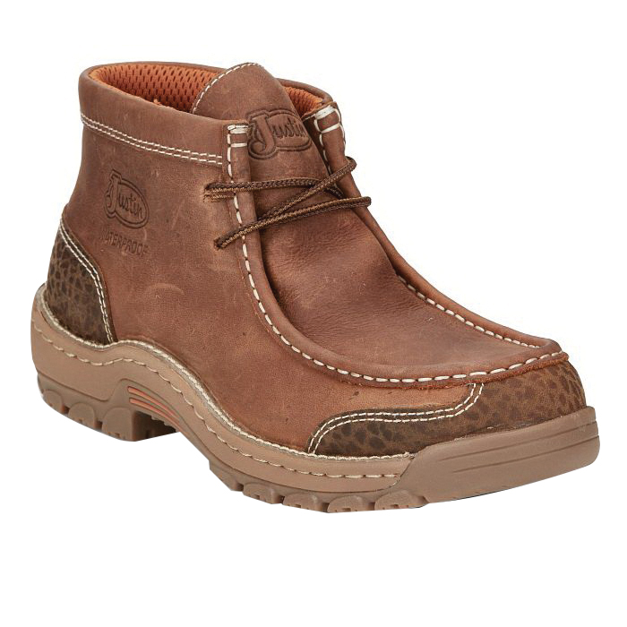The Crafton 4 in Waterproof EH Mocc Toe boot from our stampede light-duty collection is crafted from barley brown cowhide with printed accents for a subtle edge. Featuring waterproof construction, slip- and oil-resisting rubber outsoles and removable Ortholite® inserts for cushioned comfort, these boots will bring you from the jobsite or office to after-hours downtime with ease. They are electrical hazard-rated to meet ASTM F2982-11 EH standards.