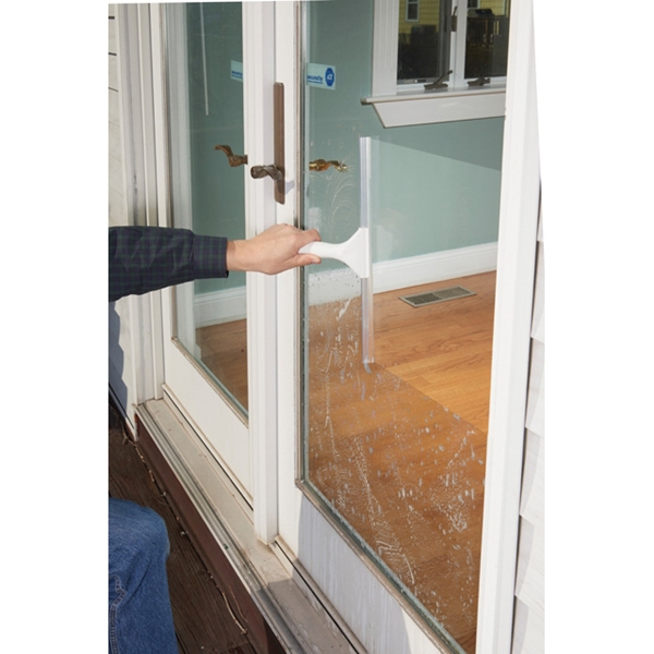This large squeegee quickly cleans windows, mirrors and glass with no streaking. Attaches to a telescopic pole (not included) for extended reach.