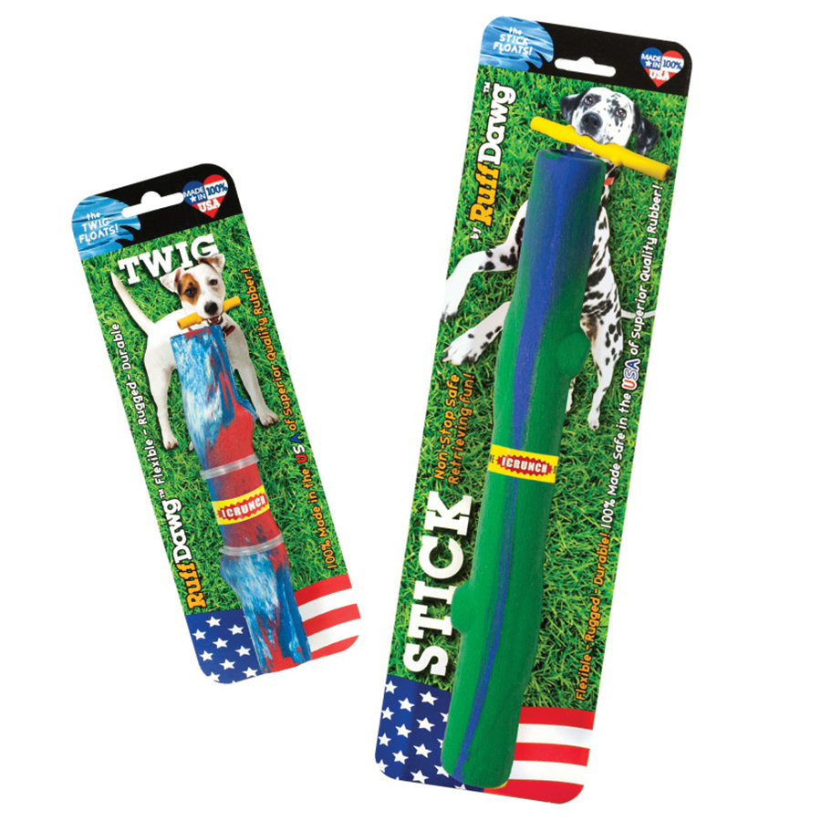 Get all the fetching fun of the real thing splinter free with some extra crunch, rugged and durable, just like original stick and twig, but with a special lining that gives these toys a crunchy sound and feel. Stick is a sure favorite of large dogs and Twig is great for smaller breeds. Perfect for retrieving, games of keep away, tugging and adorable photo ops, both can be strung on a rope for added fun.