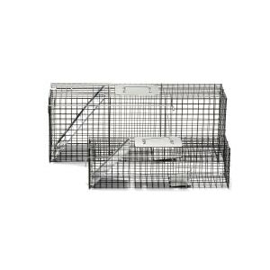 This combo pack features two traps in the most popular sizes. Both are single-door entry live traps that catch unwanted animals without injury so they can be humanely disposed of or relocated. Features a spring-loaded door that is easy to bait and set and quick to release. Beneath the convenient carrying handle is a steel plate to protect hands from contact with the animal. Larger size measures 32-1/2 in long by 11 in wide by 12-1/2 in high and works great for raccoons, porcupines, turtles, foxes and other similar-size animals. Smaller size measures 24 in long by 7 in wide by 7 in high and is best for squirrels, chipmunks, rabbits, muskrats, mink and other similar-size animals.