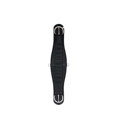 This cinch features shock-absorbing neoprene that withstands the elements, moves with your horse and detaches from the webbing for easy cleaning. Featuring a roper design, this nylon and neoprene cinch features dees for tie-down and back cinch attachment. Nylon off billet holder. Non-rust stainless steel hardware. Horse size.