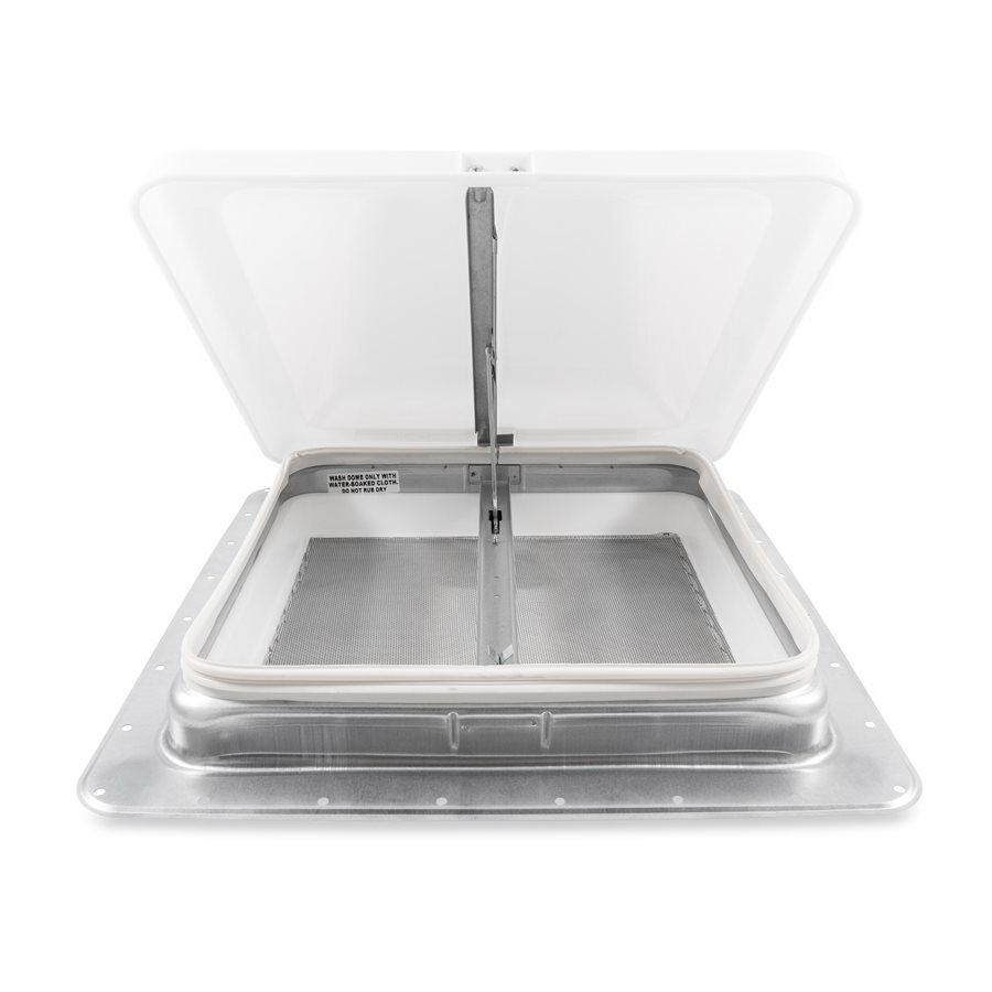 Camco's RV roof vent kit replaces Ventline, Jensen and Elixir vents. It has a seamless, one-piece frame and is leak-resistant and weather tight. The translucent lid is UV-resistant and the built-in screen allows air through while keeping insects out.