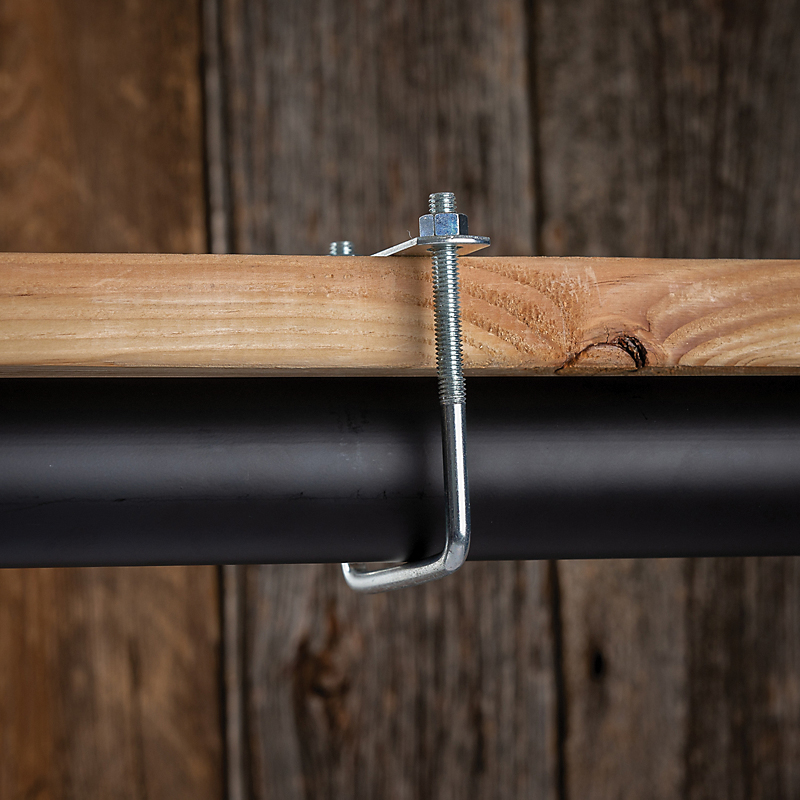 Supplied with straps and hex nuts assembled. For exterior and interior applications. Zinc steel resists rust.