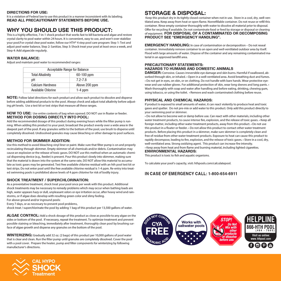 • All-in-1 weekly Cal Hypo pool shock
