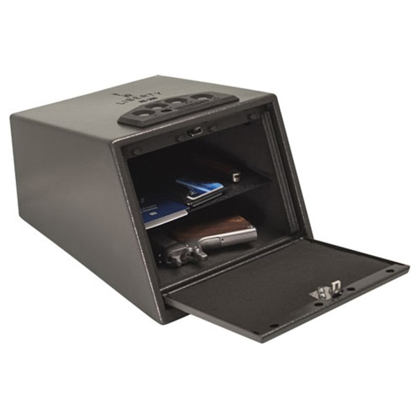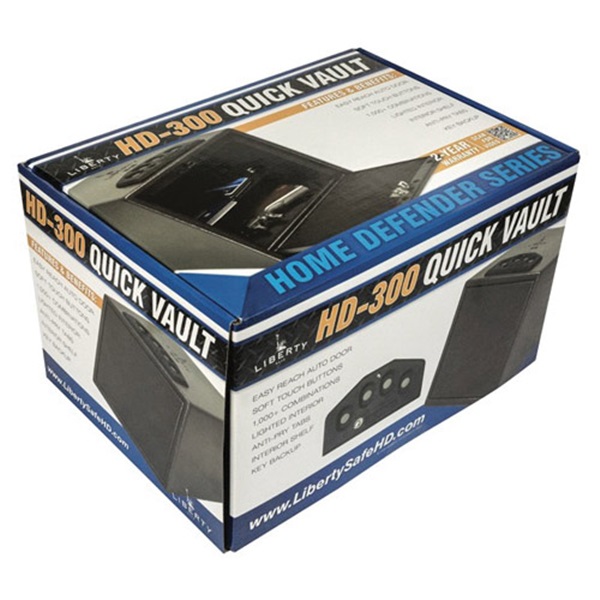 With an auto-opening door, lighted interior, interior shelf and a key backup, the Liberty HD300 quick vault provides ample space and reliable speed when you need it most. The small electronic gun safe's angled front door design allows excellent visibility and simple access.