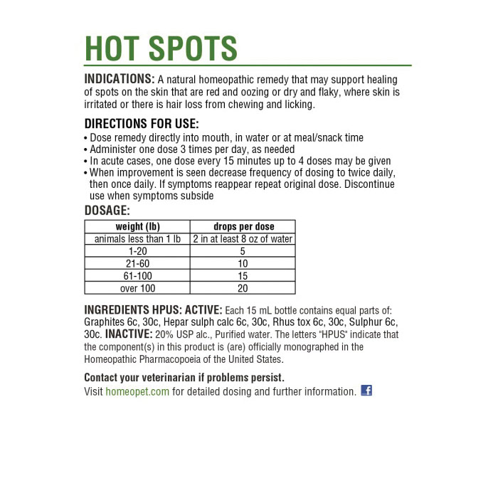May support healing of spots on your pet's skin that are red and oozing or dry and flaky, where skin is irritated or there is hair loss from chewing and licking.