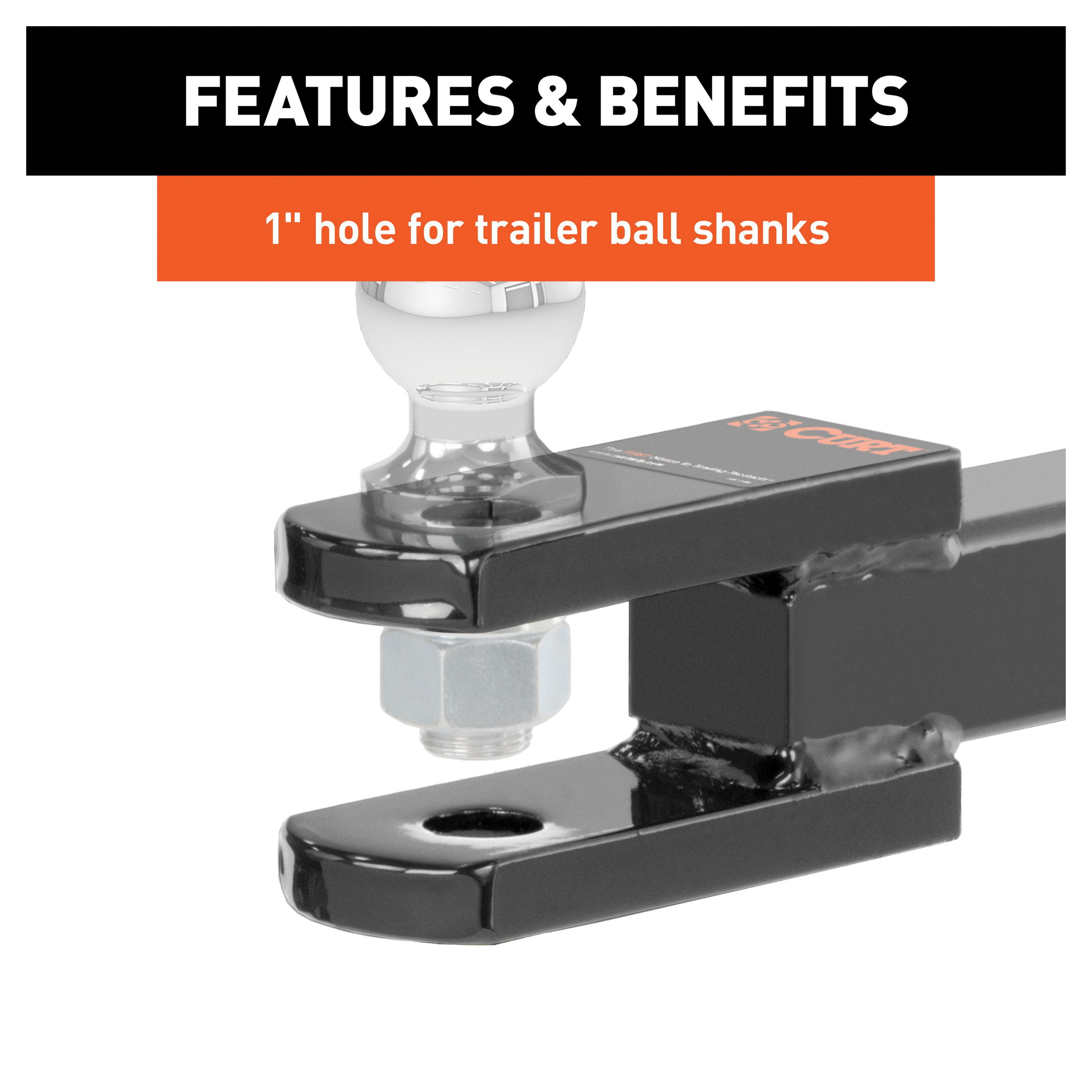 Curt specialty ball mounts are a group of exceptional towing products, built to succeed where others fear to tread. From the back roads of overrun forests to the muddy fields of small town farms, towing looks a little different and that means different demands on your towing equipment. Curt offers a full lineup of unique ball mounts that are made to tackle the rougher side of towing while still being able to fit a standard 2 x 2 in receiver tube. This specialized clevis pin ball mount converts your standard trailer hitch receiver into a multi-purpose towing accessory. The thick, removable clevis pin can accept a lunette eye or basic ring and is perfect for a variety of straight towing applications. The Curt clevis pin ball mount offers a gross trailer weight capacity of 6,000 lb and a tongue weight capacity of 600 lb, making it an excellent choice for towing medium to large-size trailers. One unique feature of this versatile ball mount is that it can also serve as a standard ball mount. It features a 1 in Dia trailer ball hole to accept the trailer ball of your choosing. For long-lasting reliability, this Curt specialty ball mount comes finished in our gloss black powder coating. This provides the corrosion, scratch and UV resistance needed to survive anything you throw its way.