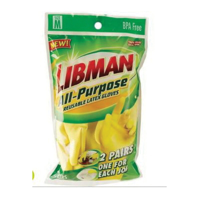Protect your hands against animal fats, vegetable oils, mild acids, detergents and alcohols with Libman all-purpose latex gloves. The absorbent cotton flock lining wicks away sweat, enhancing your control and comfort while in-use. Designed for maximum comfort, the optimized fit helps prevent hand fatigue while worn.