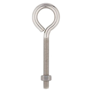 National Hardware Eye Bolt, Thread Type: Coarse, Thread Size: 3/8-16, Thread Length: 3 in, TPI/Pitch: 16, Shank Diameter: 0.33 in, Shank Length: 3.35 in, Eye Diameter: 1 in ID, 5 in OAL, Working Load Limit: 160 lb, Stainless Steel, Stainless Steel, Includes: Hex Nuts
