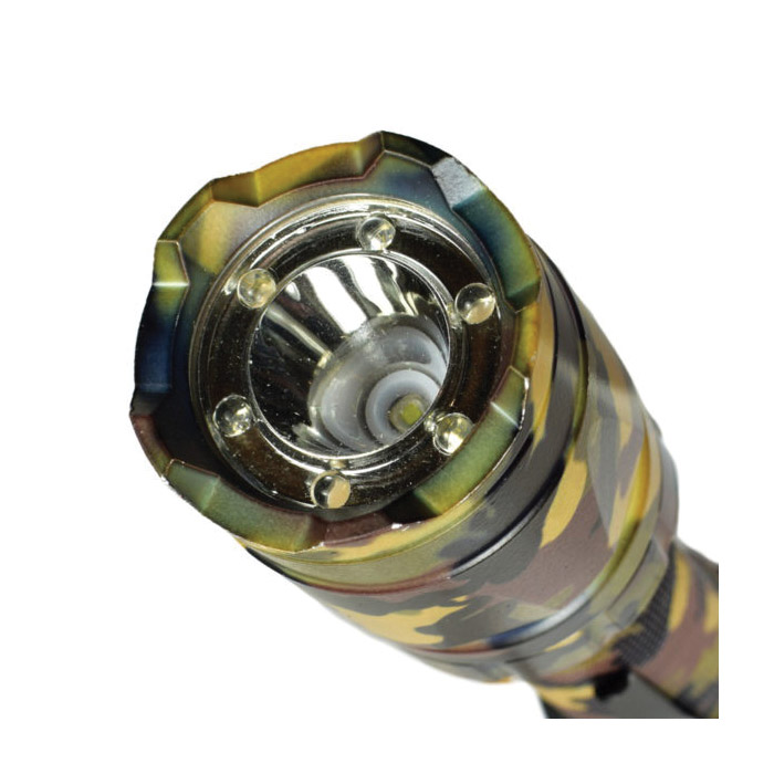 The Trac-Tact camo, featuring a high-quality LED chip delivers 280 Lumens and up to 3 hr of run time. The Trac-Tact's red LED for night vision and a violet LED for blood tracking making it perfect for the outdoors. This weather-resistant architectural grade aluminum flashlight has an industrial grade belt clip and soft switch technology, allowing seamless transition between the five modes.