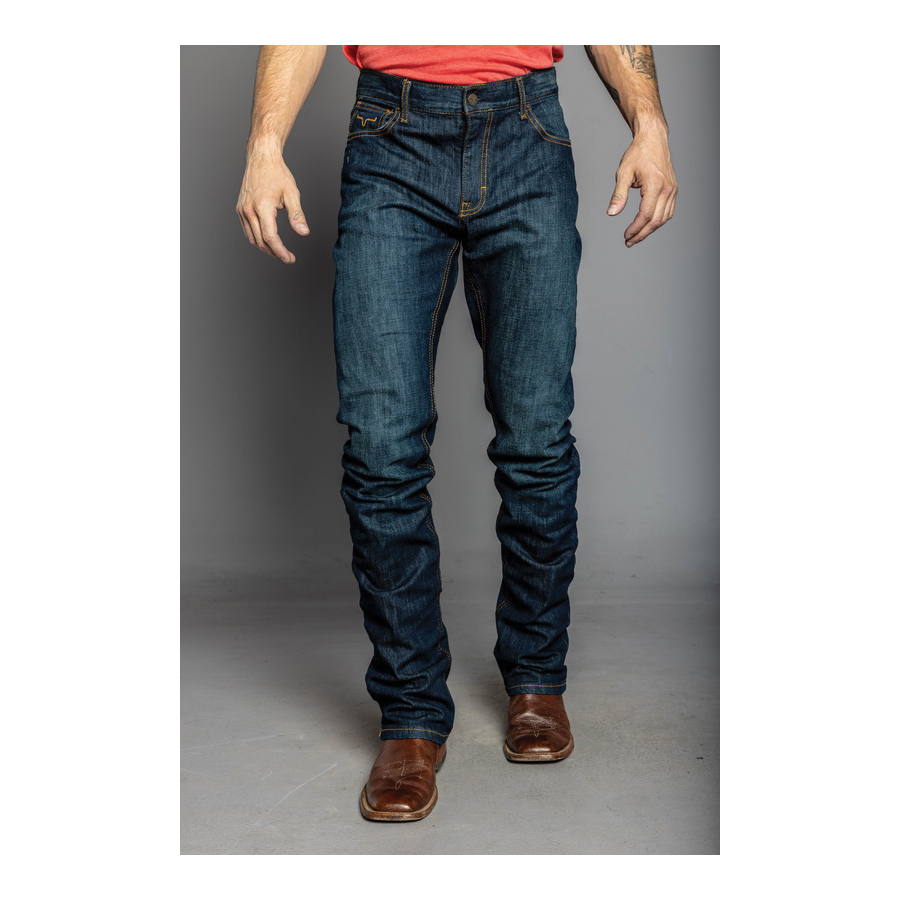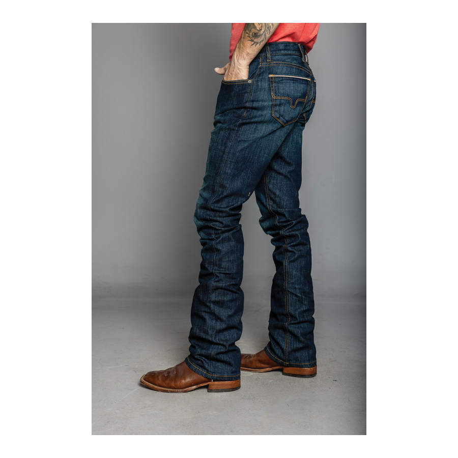 The Roger is a modern take on a classic cut jeans featuring a lower rise and slimmer fit. The dark 13 oz denim features 1% spandex for all-day wear and rebound, hand-sanding with whisker details and rear pocket details.
