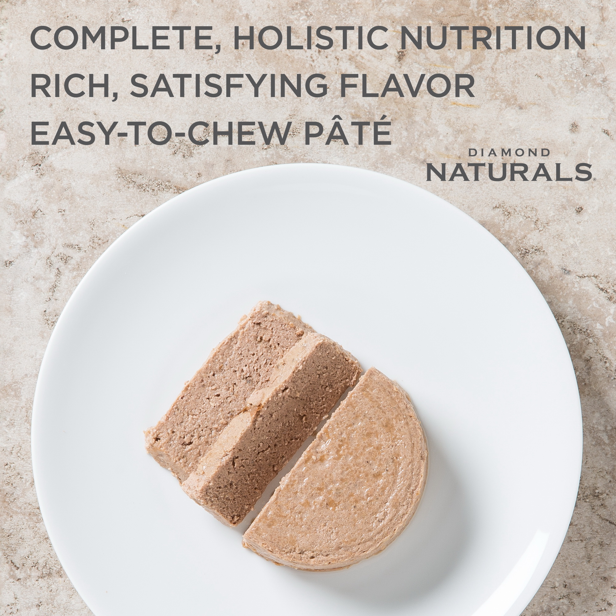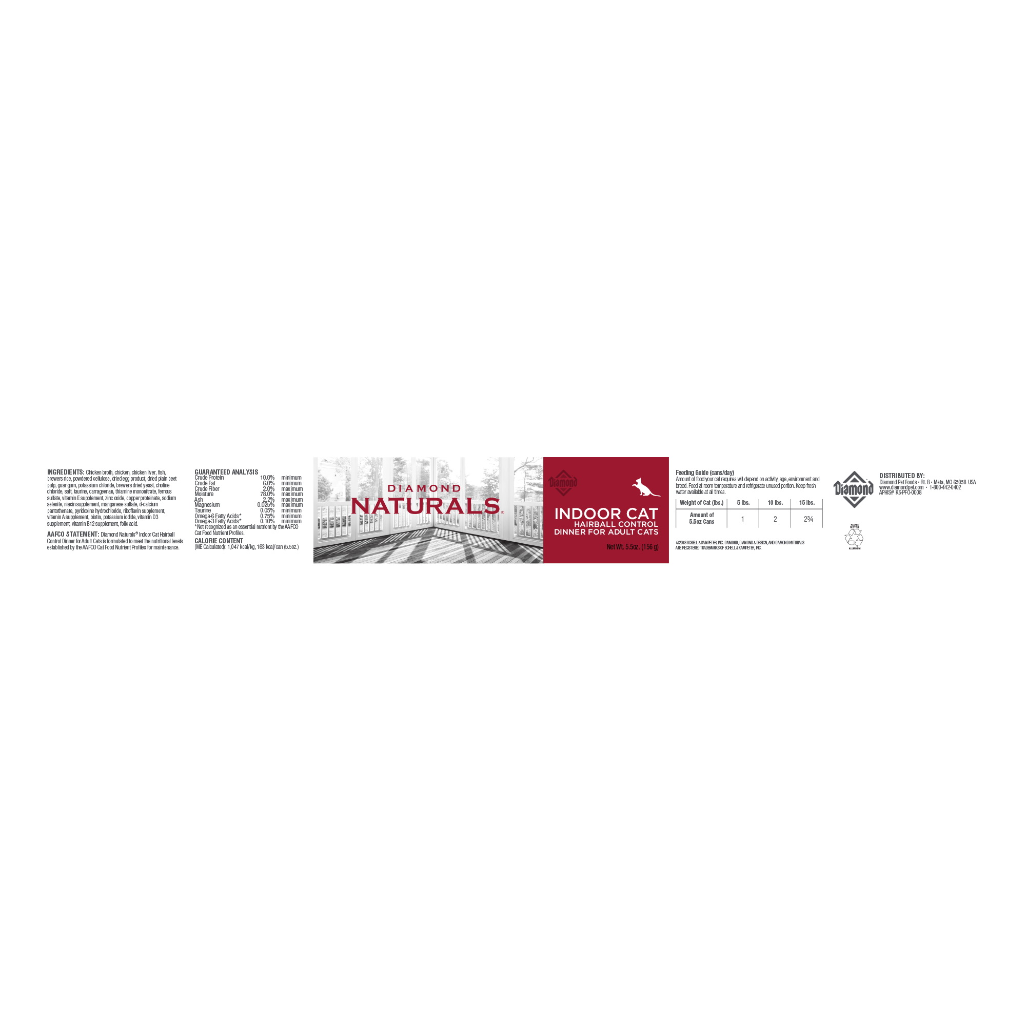 Diamond Naturals Cat Food, Adult, Dry Form, Chicken Flavor, 6 lb Net Content, Bag Container, Ingredients: Chicken Broth, Chicken, Chicken Liver, Fish, Brewers Rice, Powdered Cellulose, Dried Egg Product, Dried Plain Beet Pulp, Guar Gum, Potassium Chloride, Brewers Dried Yeast, Choline Chloride, Salt, Taurine, Carrageenan, Thiamine Mononitrate, Ferrous Sulfate, Vitamin E Supplement, Zinc Oxide, Copper Proteinate, Sodium Selenite, Niacin Supplement, Manganese Sulfate, D-Calcium Pantothenate, Pyridoxine Hydrochloride, Riboflavin Supplement, Vitamin A Supplement, Biotin, Potassium Iodide, Vitamin D3 Supplement, Vitamin B12 Supplement, Folic Acid, Nutritional Information: 10% Crude Protein, 6% Crude Fat, 2% Crude Fiber, 78% Moisture, 2.2% Ash, 0.025% Magnesium, 0.05% Taurine, 0.75% Omega-6 Fatty Acids, 0.1% Omega-3 Fatty Acids