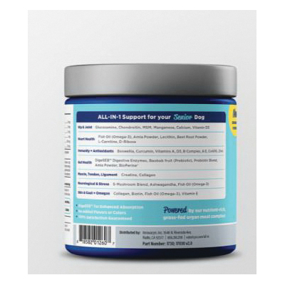 The puppy, adult and senior dog life stage formulas of ALL-IN are designed to support the key biological needs of dogs in that age group. For puppies there is a focus on reinforcing healthy growth and development. The adult formula is optimized to recharge the system and support optimal performance both inside and out. And our senior formula helps with overall mobility and provides rejuvenation for a senior dog's aging system. Plus, all formulas are packed with prebiotics and antioxidants that help overall digestive and immune health.