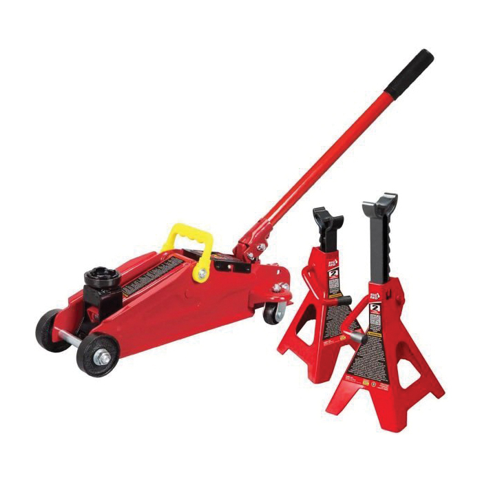 Torin Big Red Hydraulic Trolley Floor Jack Combo, 2 ton Weight, Lift Range: 5-1/4 to 13-3/8 in, Steel, Includes: (1) Floor Jack, (2) Jack Stands