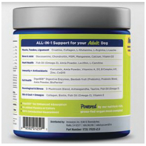 The puppy, adult and senior dog life stage formulas of ALL-IN are designed to support the key biological needs of dogs in that age group. For puppies there is a focus on reinforcing healthy growth and development. The adult formula is optimized to recharge the system and support optimal performance both inside and out. And our senior formula helps with overall mobility and provides rejuvenation for a senior dog's aging system. Plus, all formulas are packed with prebiotics and antioxidants that help overall digestive and immune health.