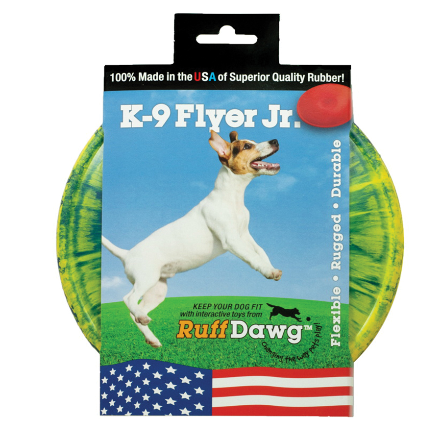 Floppy flexible flying discs made of solid rubber let your dog play all day long without harming teeth and gums. Fun to throw for kids and adults alike, K9 flyer is easy-to-throw, catch and pick up. One of our most popular toys, K9 flyer comes in two sizes, so all dogs can get in on the action.