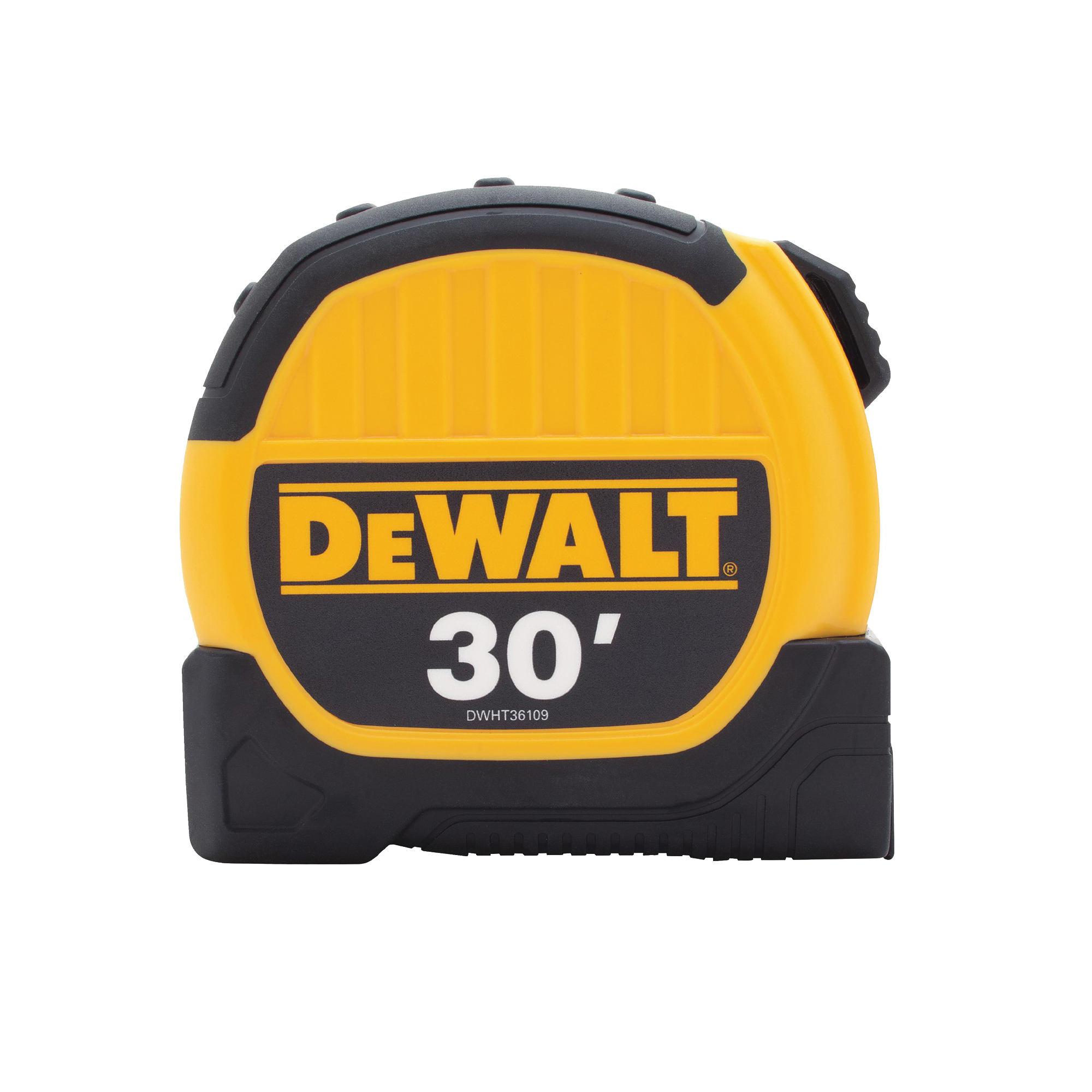 DEWALT DWHT36109 Tape Measure, 30 ft L Blade, 1-1/8 in W Blade, Steel Blade, ABS Case, Black/Yellow Case