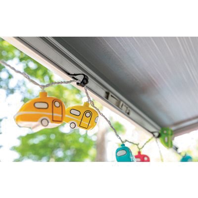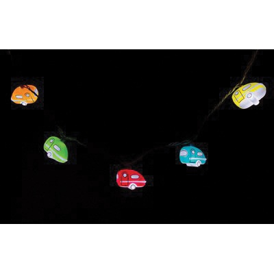 Camco's life is better at the campsite retro travel trailer LED party lights provide a festive atmosphere that is ideal for RV enthusiasts. Features an 8 ft strand with (10) retro travel trailer LED lights and an end connector for hooking strands together. The 120 V, 2.4 W party lights are UL certified for indoor and outdoor use.