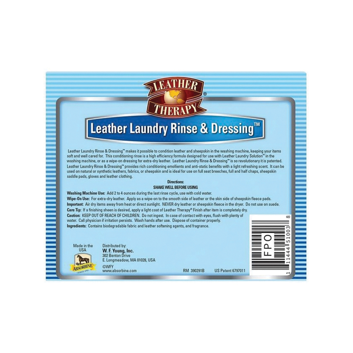 A patented, non-detergent leather-conditioning rinse that works with leather laundry solution for natural or synthetic leathers, fabrics and sheepskin. Provides rich conditioning emollients and anti-static benefits.