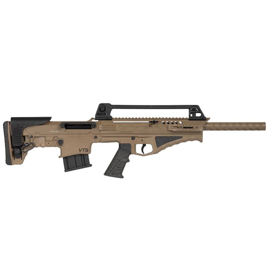 The Escort BTS bullpup offers all the perks of the VTS Series shotguns in a more compact, portable package. The gun's SMART valve piston will cycle 7/8 to 2 oz magnum loads in 2-3/4 and 3 in magnum rounds, credited to its self-regulating design. The patented design is so reliable that one can mix heavy and light loads in the same magazine without a hiccup. The synthetic barrel cover features Hatsan's patented ThermoDefend technology that absorbs and dissipates heat. The reversible charging handle offers the ability for ambidextrous operation. The BTS bullpup is slender, with smaller dimensions, thus it is more agile to and at the shoulder. Great for close quarter action.