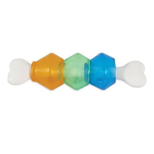 Your dog will enjoy quiet, playful learning with the JW® pet evertuff nylon treat pod. This unique toy allows your dog to manipulate and slide the pods to release the treats. Three durable TPR treat pods can be filled with your dog's favorite treats or used as a toy. The treat pods are perfect for self-play and can help curb destructive behavior by providing rewards based on play with this interactive chew toy. The chicken flavored durable nylon bone provides added chewing enjoyment. Dog tested for long term play. Available in two sizes, small and large, to accommodate your pet's chew time needs.