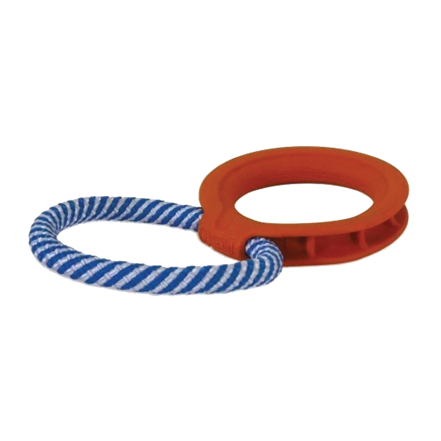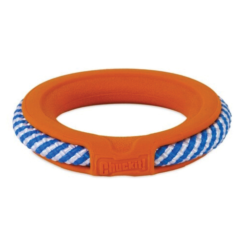 Throw it. Tug it. There are 2-ways to play with the Chuckit!® Fetchtug™. When thrown with the RingChaser®, the unique topspin infused action causes the Fetchtug to roll on the ground just like the real game, engaging your dog's natural chase instinct. When fetch is over, undo the self-storing rope tug for bond building games of tug-o-war. Designed to withstand the roughest of tuggers and multiple games of fetch, the Fetchtug will quickly become your dog's favorite new fetch toy.