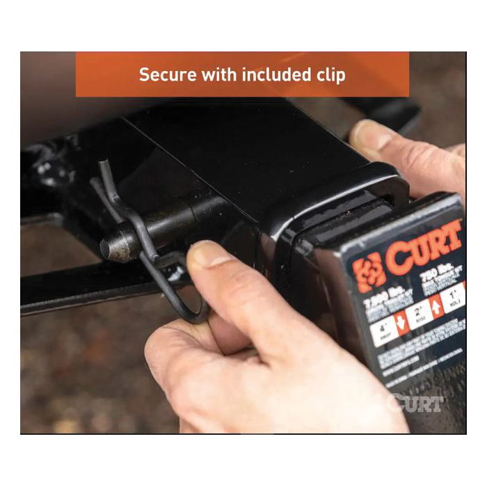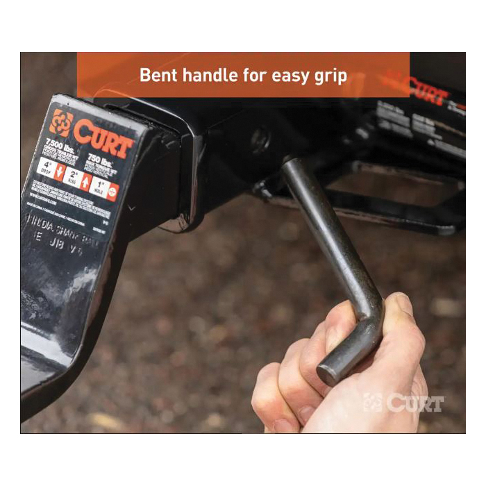 When you mount a ball mount on your trailer hitch, you expect it to stay put. Whatever type of load you are hauling, having towing equipment that can work as hard as you do is a must. For all types of heavy-duty towing, Curt 5/8 in hitch pins and clips pack a little extra punch. We make our 5/8 in hitch pins out of solid steel and coat them in one of four finish options. All of these finishes offer excellent resistance to rust and corrosion for long-lasting, smooth operation. Curt hitch pins are also constructed with a 105 deg bend, creating a useful handle for a better grip and allowing the pin to stay securely engaged in the trailer hitch and ball mount. This particular 5/8 in hitch pin features a black zinc finish and comes with a standard retainer hole to accept the included clip. It provides reliable installation for any ball mount or hitch-mounted accessory with a 2 in shank, making it the ideal fit for class 3, 4 and 5 trailer hitches.