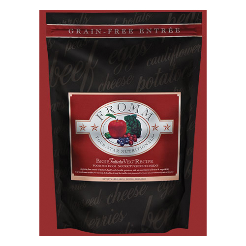 A grain-free entree with beef, beef broth, lentils, potatoes and an assortment of fruits and vegetables. Fromm Four-Star nutritionals® beef frittata veg® recipe food for dogs is formulated to meet the nutritional levels established by the AAFCO dog food nutrient profiles for all life stages, including growth of large size dogs (70 lb or more as an adult).