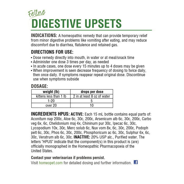 Can provide temporary relief from minor digestive problems in felines, such as vomiting after eating and may reduce discomfort due to diarrhea, flatulence and retained gas.