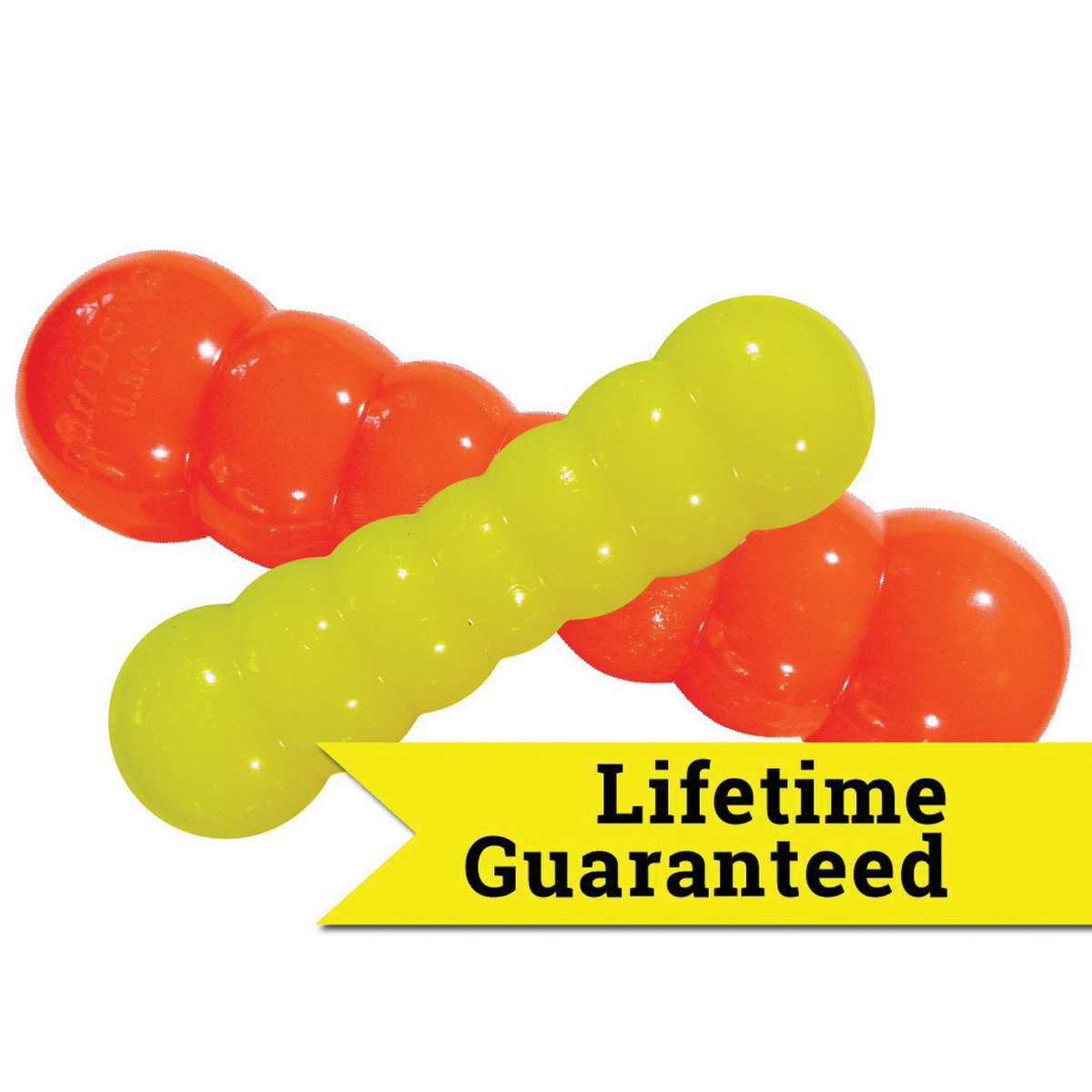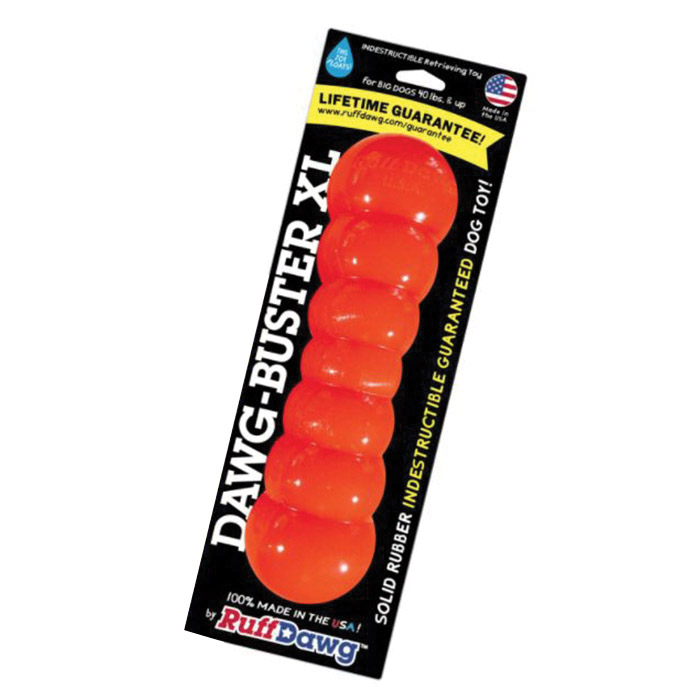 Ruff Dawg's toughest toy yet, the Indestructible Dawg-Buster is designed to stand up to the most intense play. In 2 sizes and an assortment of bright high-visibility neon colors that won't get lost in the grass or the pool. These indestructible toys float, crazy-bounce and take serious abuse during heavy play, but stay gentle on teeth and gums, so the retrieving can go on and on. If your dog damages her Dawg-Buster toy, don't panic, we've got you covered with a replacement guarantee.