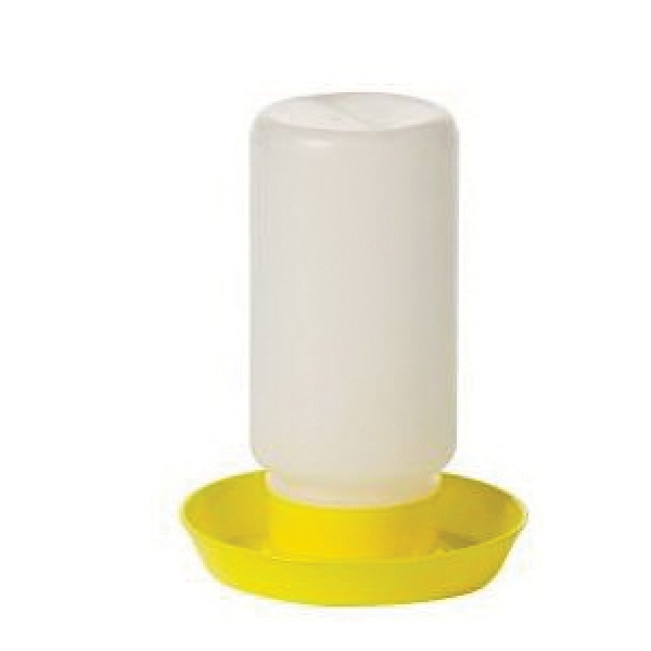Screw-on base combines with the Little Giant 1 qt screw-on feeder/waterer jar to make a gravity-feed waterer for baby chicks and small birds. 6 in Dia by 1-1/2 in H. Made of heavy-duty polystyrene.