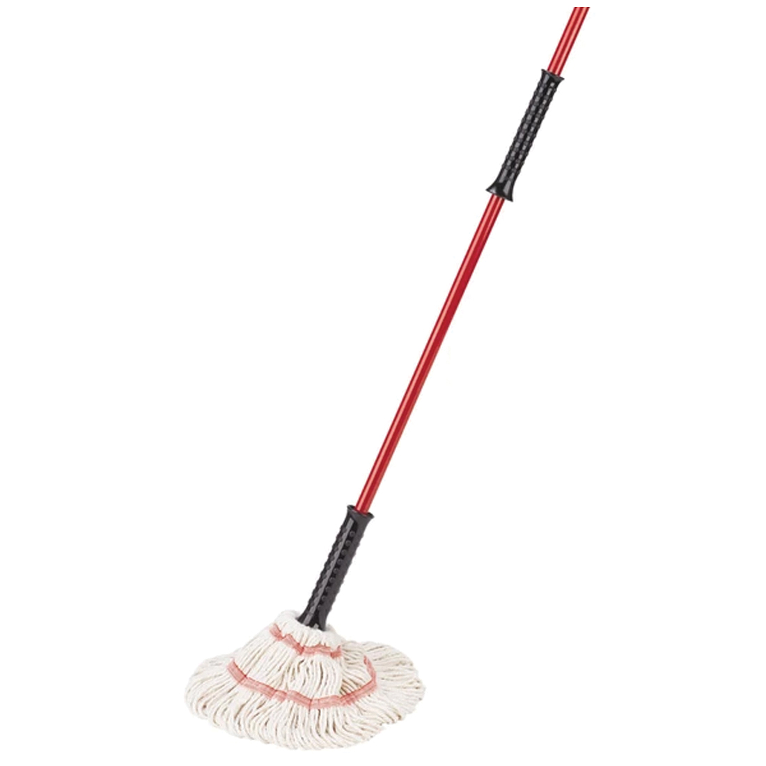 The grip n' click ratchet wrings more water. Mop head is machine washable. 3 red bands prevent tangling. Larger mop head covers more surface area. Resists odor causing bacteria.