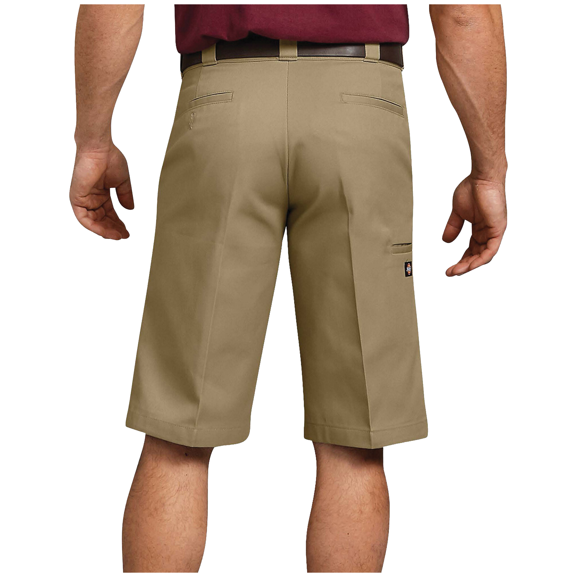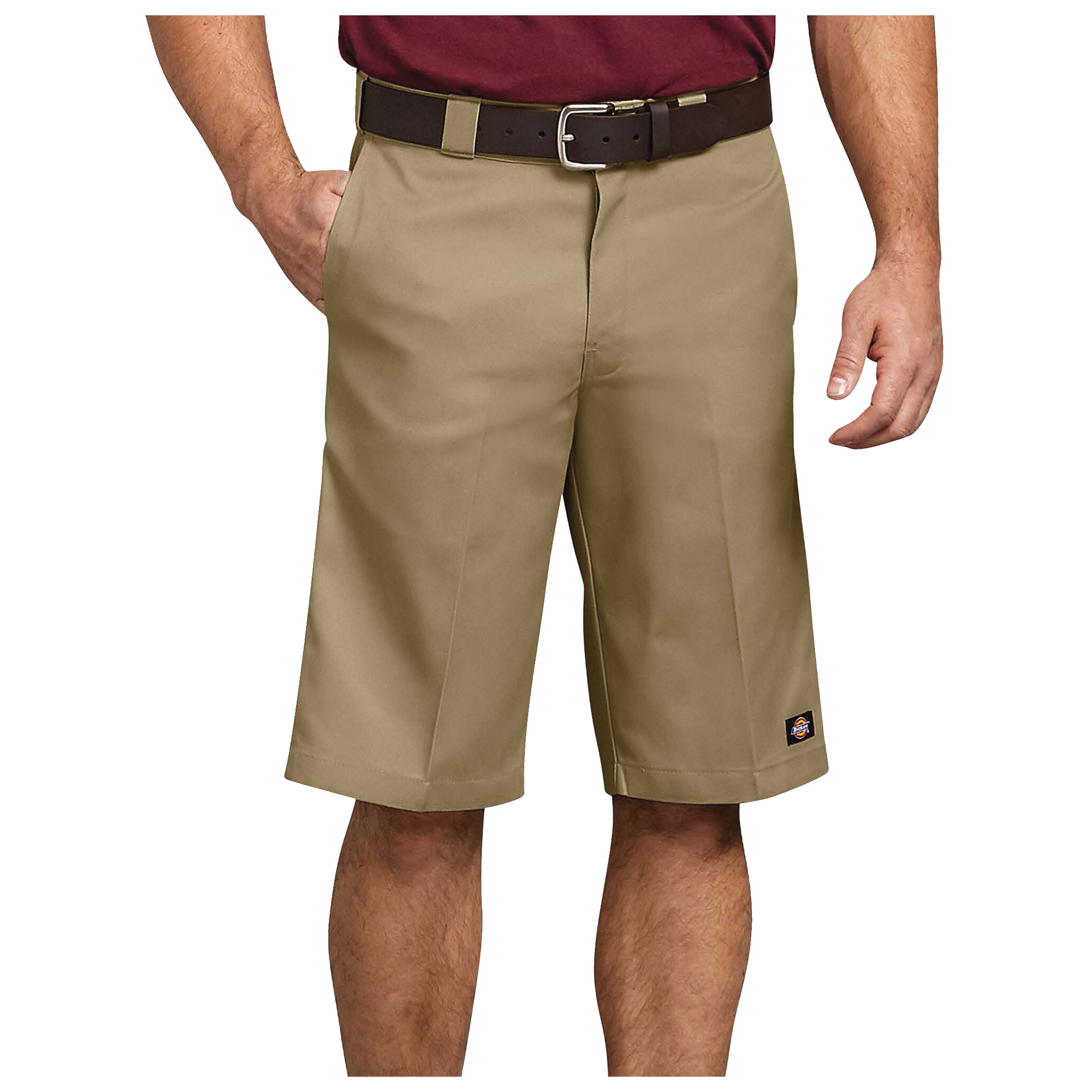 A solution to working in the sweltering heat, Dickies' 13 in relaxed fit multi-pocket work shorts are even more heavy-duty than they look. The polyester/cotton fabrication makes them extremely durable and long-lasting, while the sharp center crease and wrinkle-resistant finish keeps you looking crisp from start to finish. Must-have features include a non-rolling waistband, wide-tunnel belt loops and a multi-use pocket positioned for you to keep all your accessories within reach-all at an incredible value.
