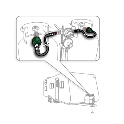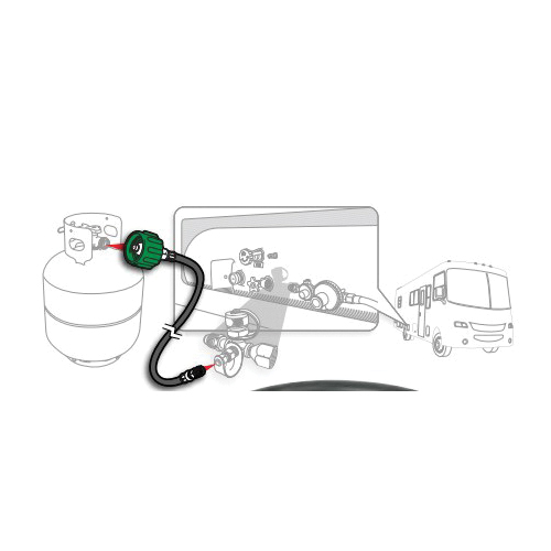 For connecting propane cylinder to RV or trailer propane regulator. Rated for 200,000 Btu/hr. Provides thermal protection in case of fire and excess flow protection in case of broken gas line. Type 1 ACME nut x 1/4 in inverted male flare.