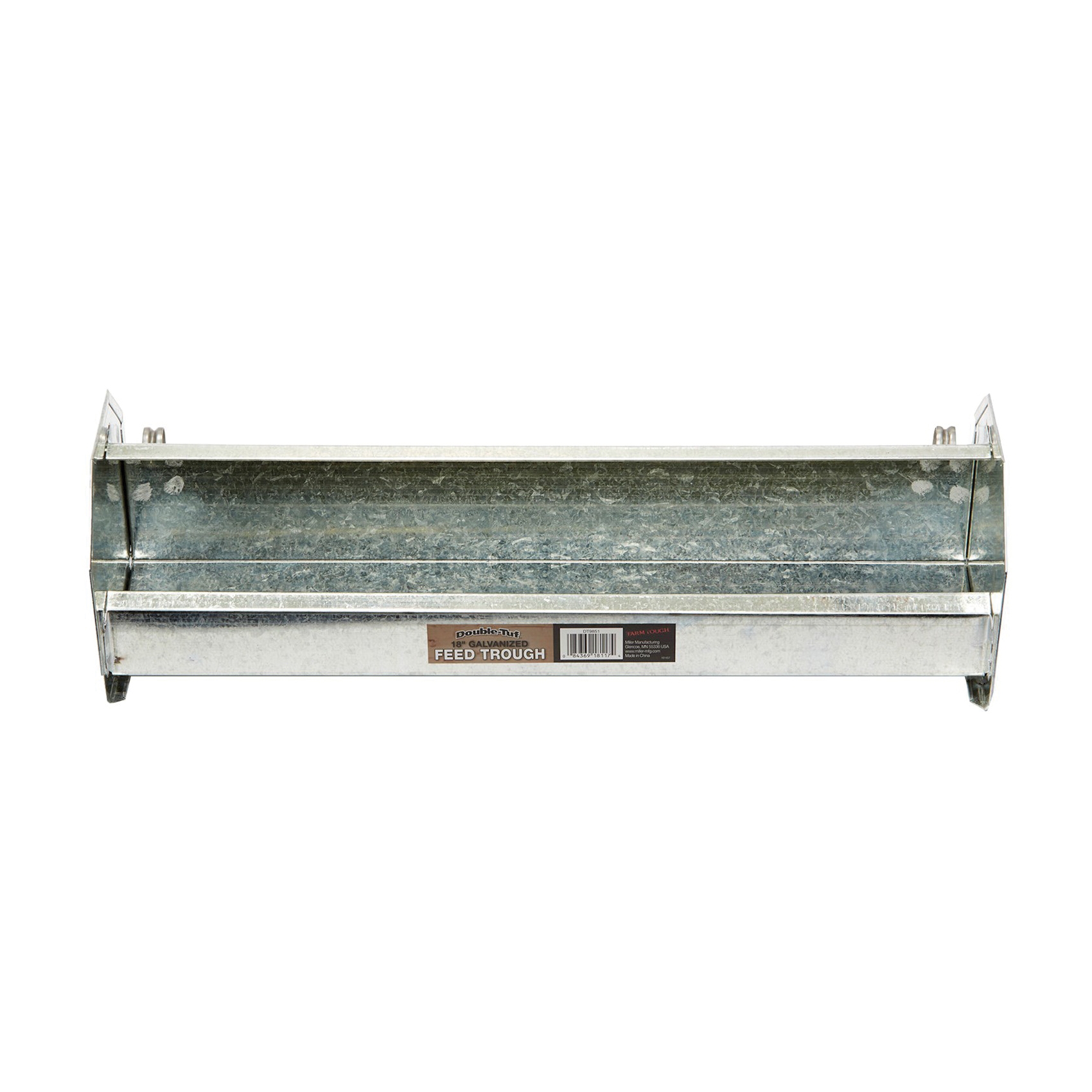 This Double-Tuff galvanized trough feeder is made of tough stuff. Made from sturdy galvanized steel for durability and features rolled edges for safety. The large 18 in trough area holds up to 3 lb of feed. Rear hooks allow for easy hanging in the coop or hutch.