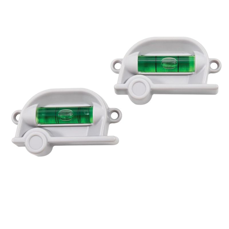 Camco's retro RV level is a fun shaped, functional tool that helps show when your RV is level. Leveling your RV allows your doors and appliances to function properly. The level provides front to back or side to side leveling and can either be screw mounted or mounted with the provided double-sided foam tape. Includes two levels, so you can mount one on the back and one on the side of your RV. Patented.