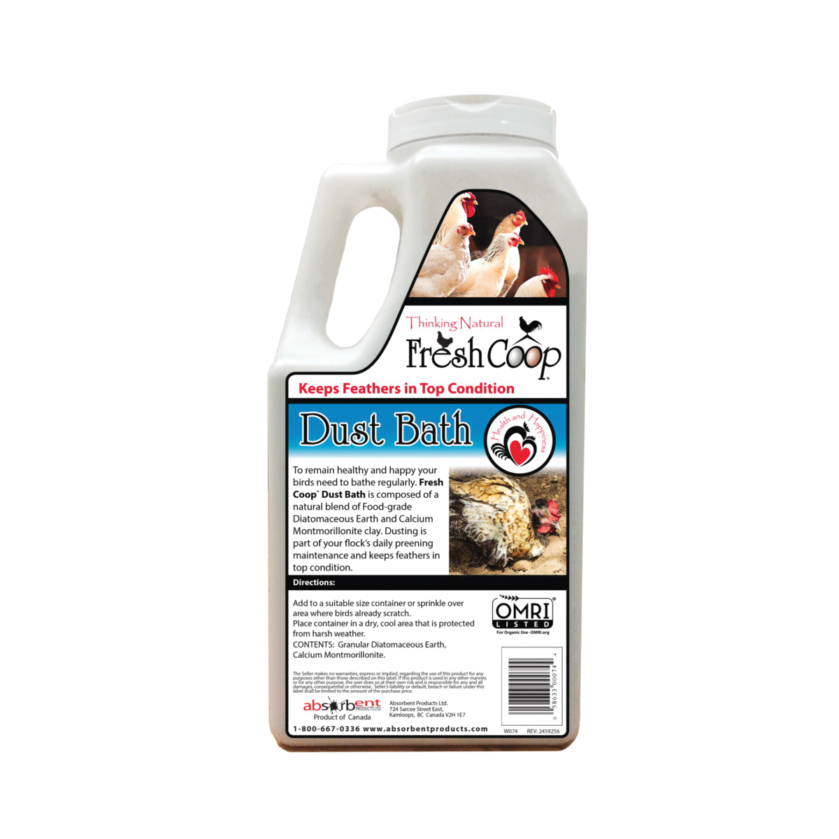 Fresh Coop dust bath is a backyard chicken dust bath material that promotes a regular, healthy preening routine. This helps to keep your backyard flock happy and healthy and keeps feathers in top condition. Fresh Coop dust bath is composed of food chemical codex-grade (Food-Grade) diatomaceous earth and calcium montmorillonite. This unique natural blend of diatomaceous earth helps to keep feathers clean by absorbing excess oils.