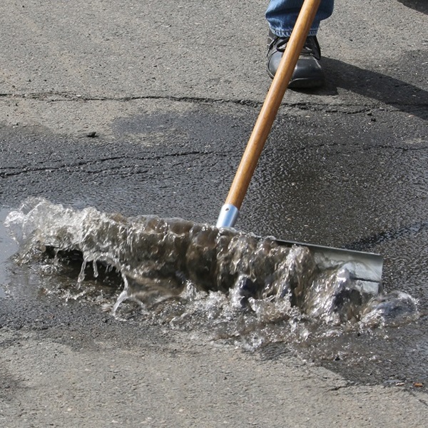 Galvanized steel straight floor squeegee has a curved hood with Maxwave™ technology. Moves 50% more water, slush and debris with same effort than standard floor squeegees. Resists harsh chemicals, oils and acids and works on smooth surfaces like asphalt and concrete floors.