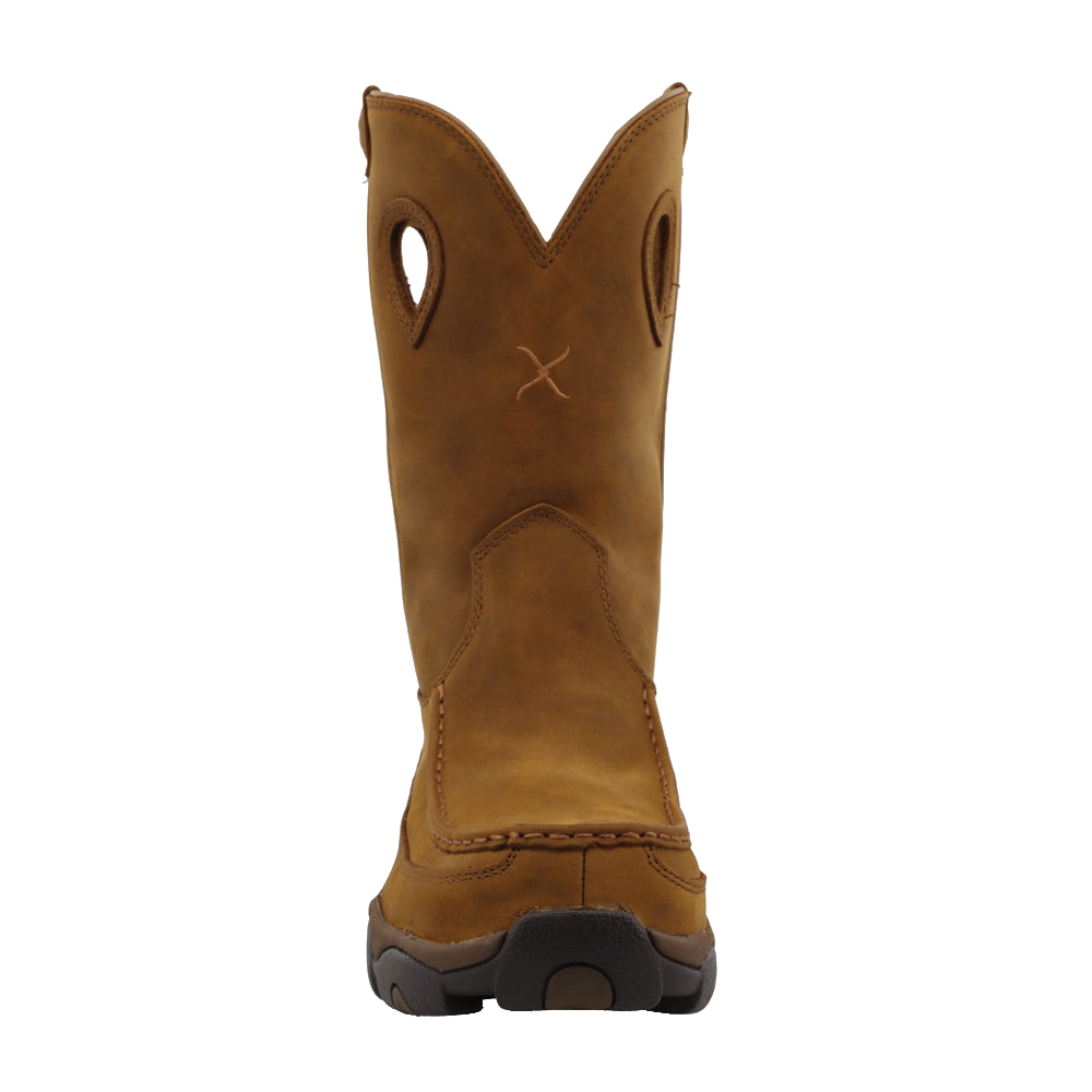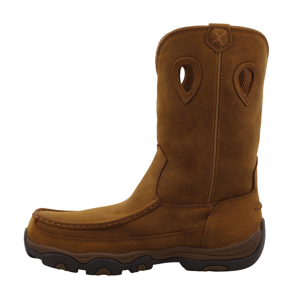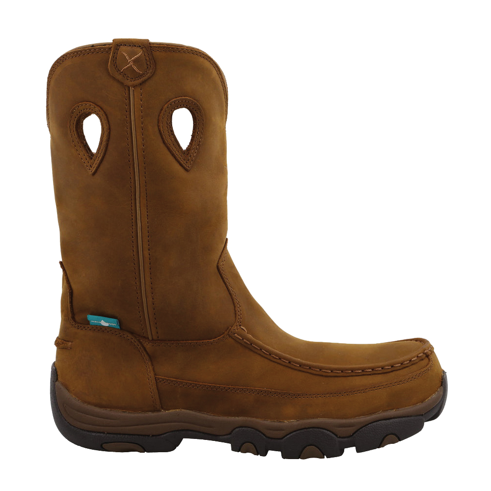 The men's work waterproof 11 in composite toe pull-on hiker boots is handcrafted with premium full-grain leathers and features a breathable waterproof lining and air-mesh lined shaft. The Twisted X® moulded footbed and three-quarter length composite insole provide all-day cushion and support. The full-length moulded EVA midsole provides a layer of shock absorption for the entire foot. This is paired up to an oil and slip-resistant moulded rubber outsole for traction in challenging conditions. Twisted X® work footwear provides all the comfort, stability and durability that you need to outperform any demanding work environment.