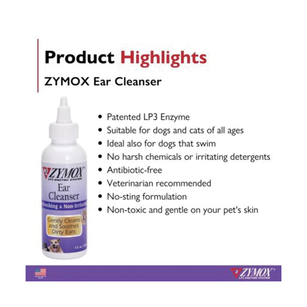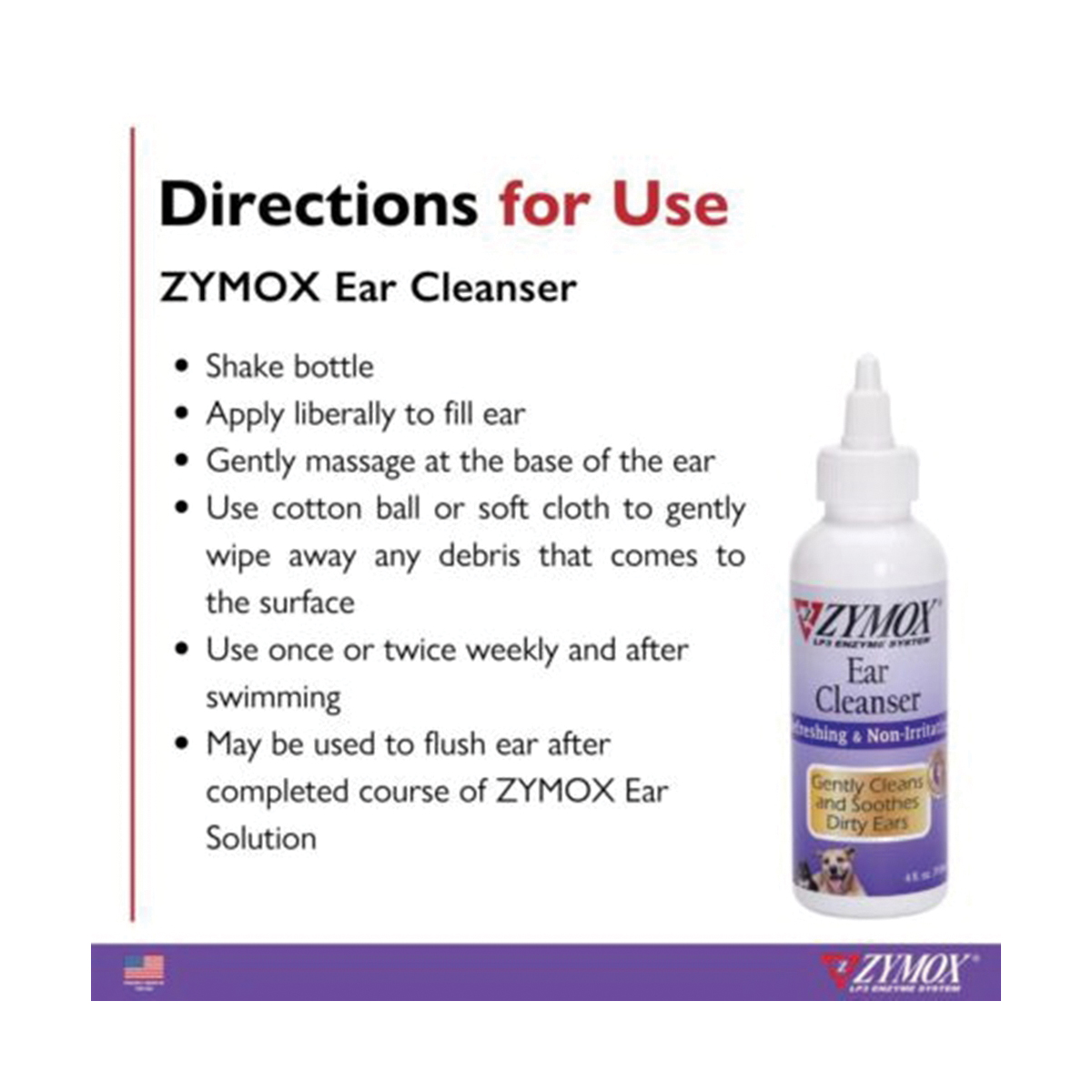 Provides an effective, non-toxic and gentle way to manage dirty ears. Features a combination of protein, enzymes and surfactants that make ZYMOX® Ear Cleanser ideal for long term cleaning of non-infected dirty ears. Does not contain harsh chemicals or detergents that can irritate ears. Leaves ears smelling fresh. May be used after completed course of ZYMOX Enzymatic Ear Solution with or without Hydrocortisone.