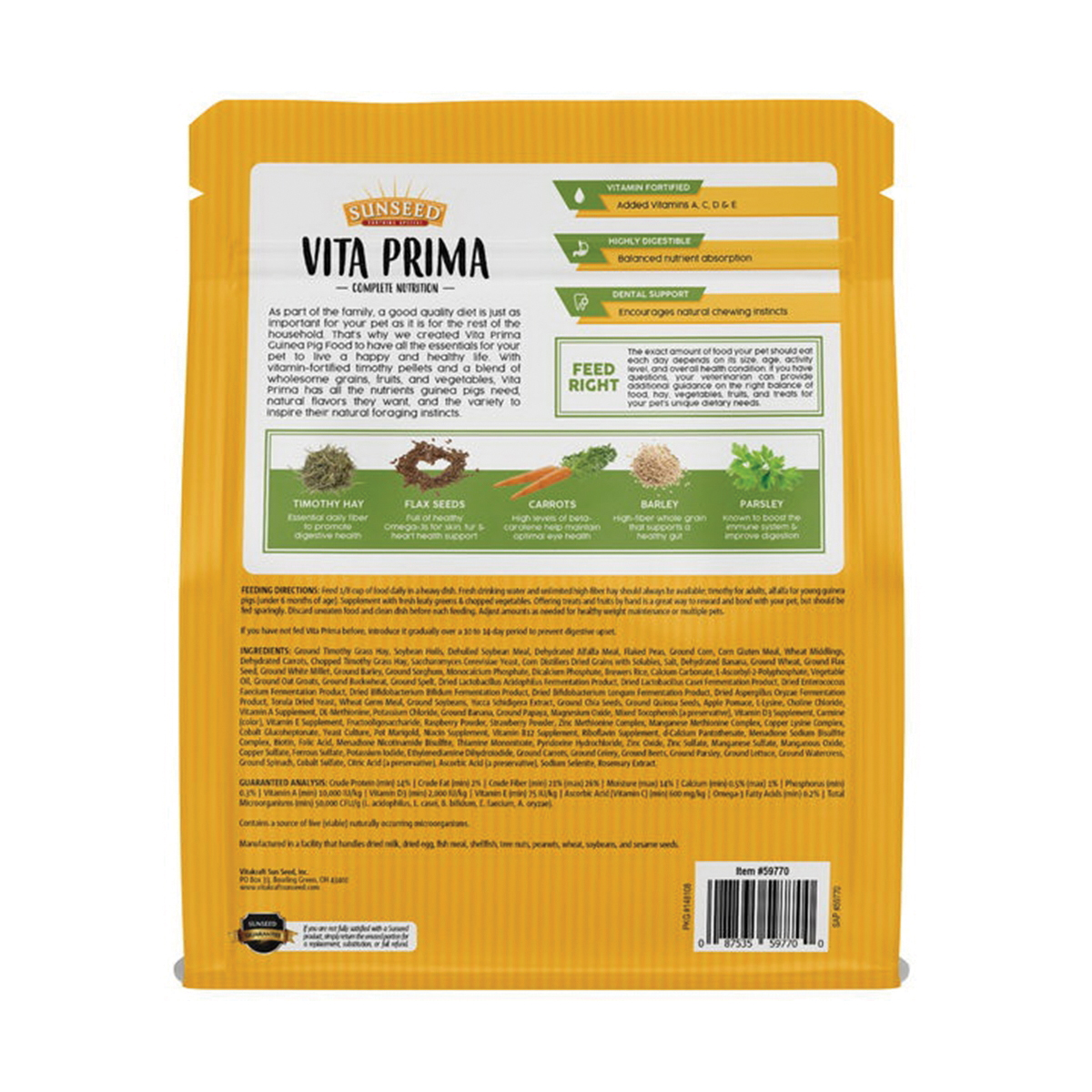 As part of the family, a good quality diet is just as important for your pet as it is for the rest of the household. That's why we created vita prima guinea pig food to have all the essentials for your pet to live a happy and healthy life. With vitamin-fortified timothy pellets and a blend of wholesome grains, fruits and vegetables, vita prima has all the nutrients guinea pigs need, natural flavors they want and the variety to inspire their natural foraging instincts.