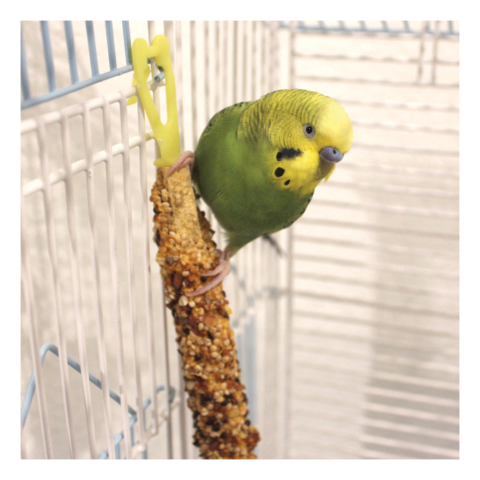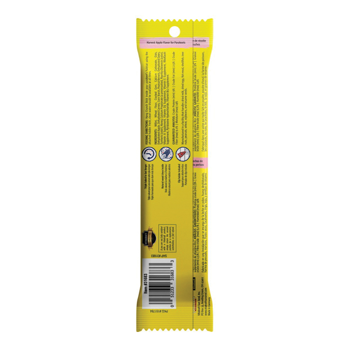 Treat your parakeet to a crunchy, long-lasting baked treat stick made with real fruit, veggies and wholesome grains. Crunch sticks don't just taste good they also help support your bird's beak health and provide important stimulation to prevent boredom. The triple baked layers make this treat last longer, with a natural wood chew center that provides hours of chewing fun long after the treat part is gone.