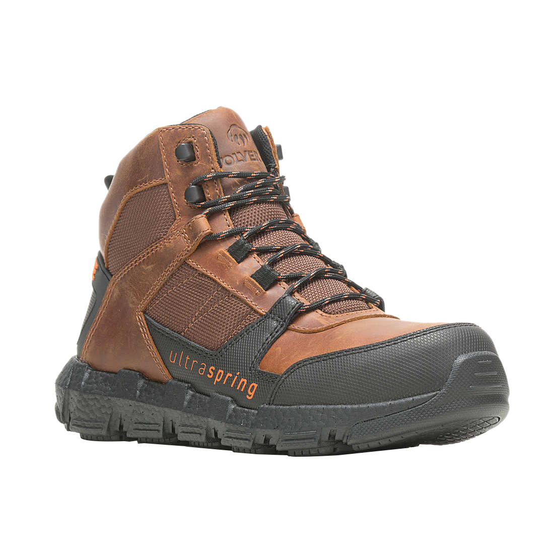 Focused on lightweight responsiveness and extreme cushioning, the Rev Ultraspring™ DuraShocks® delivers energy back to your foot. The Rev is powered by a high-performance Ultraspring midsole that delivers a lightweight, supercharged ride for maximum response. Built with Wolverine's excellent comfort technology, DuraShocks® Flex, the Rev absorbs shock for long days on your feet.