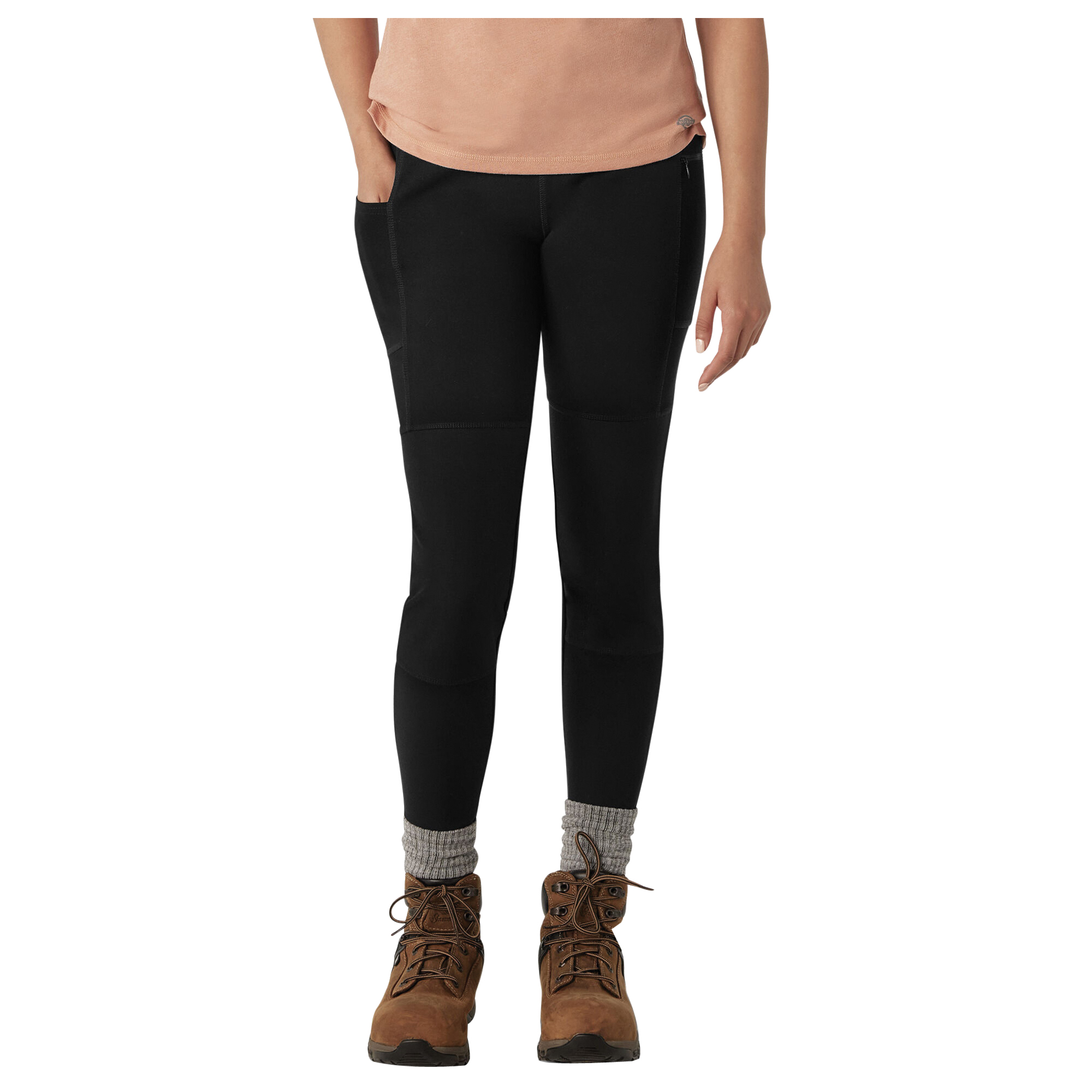 These ProTect utility leggings are made to keep up at the jobsite. The women's work style is made to handle any workday challenge with a fabrication that never limits your movement and a fit that never gets in the way. The leggings are reinforced at the knee and feature a generous drop-in pocket at one side and secure zippered pocket at the other side for function you can count on. They're built for comfort and durability you can trust to get you through any workday. The leggings are available in women's plus sizes to ensure everyone finds a fit that works.