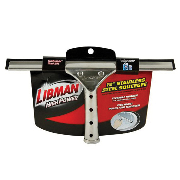 Libman 189 All-Purpose Squeegee, 12 in Blade, Straight Blade, Vulcanized Rubber Blade, Stainless Steel Handle