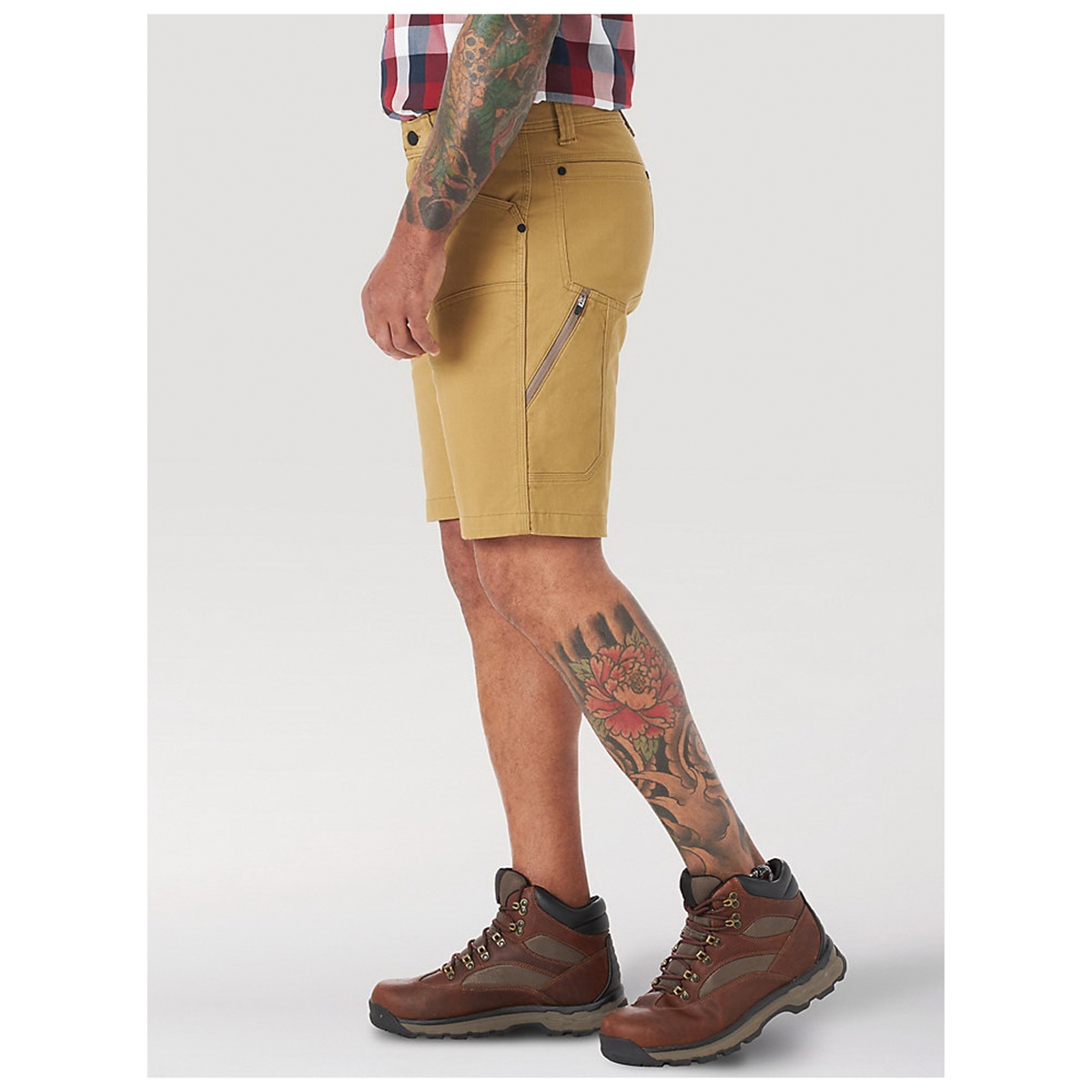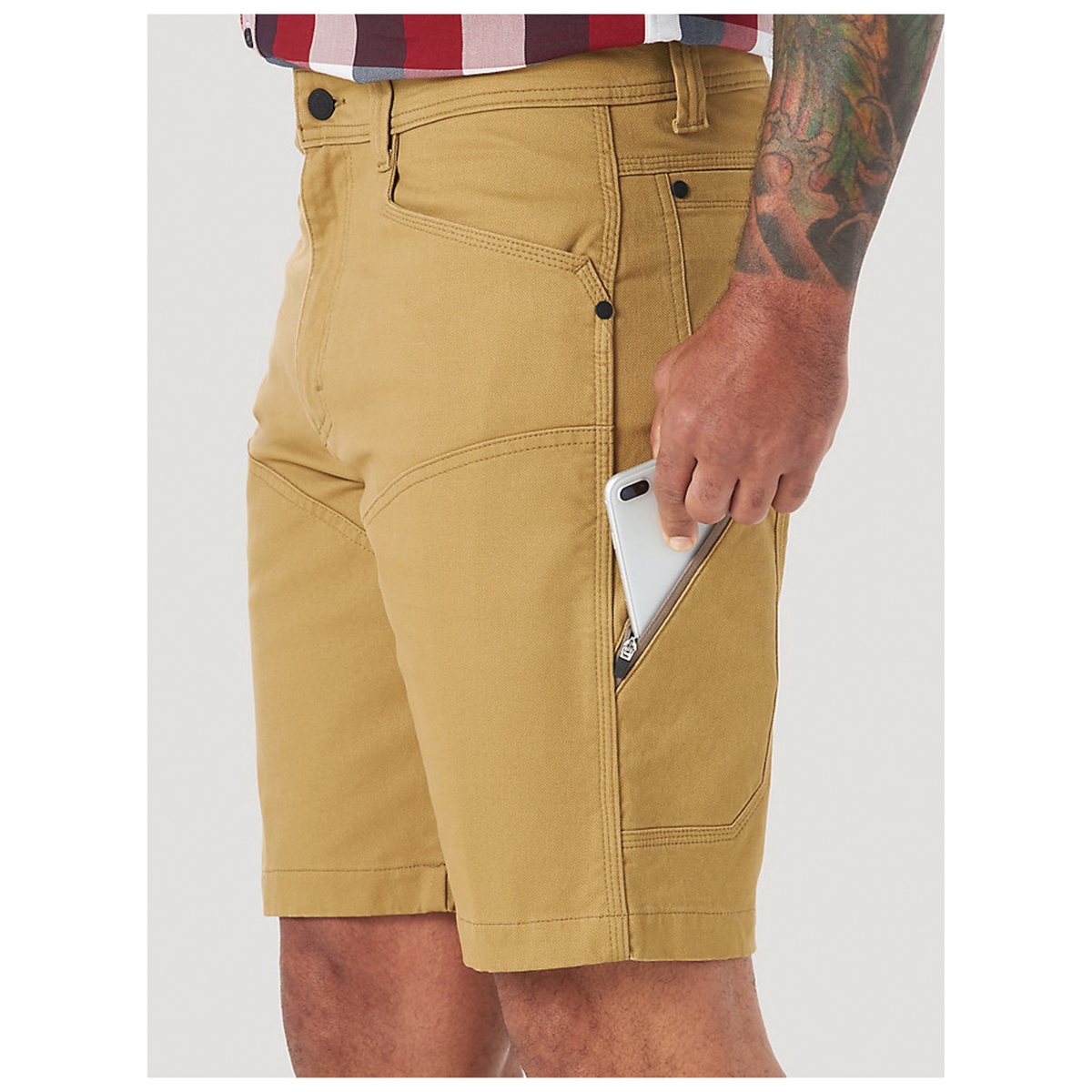 Equipped with everything you need to take on the day, the ATG™ by Wrangler® men's reinforced Utility Shorts is the epitome of versatility. It features oversized front pockets and a secure zip utility pocket to keep your essentials handy. Thanks to its gusseted crotch, this short stays comfortable even when you're crouching, squatting, climbing or stretching. But that's not all these utility shorts are thoughtfully crafted with a comfortable blend of cotton and stretch fabric, complete with moisture-wicking properties and UPF 30 to help you brave the elements.