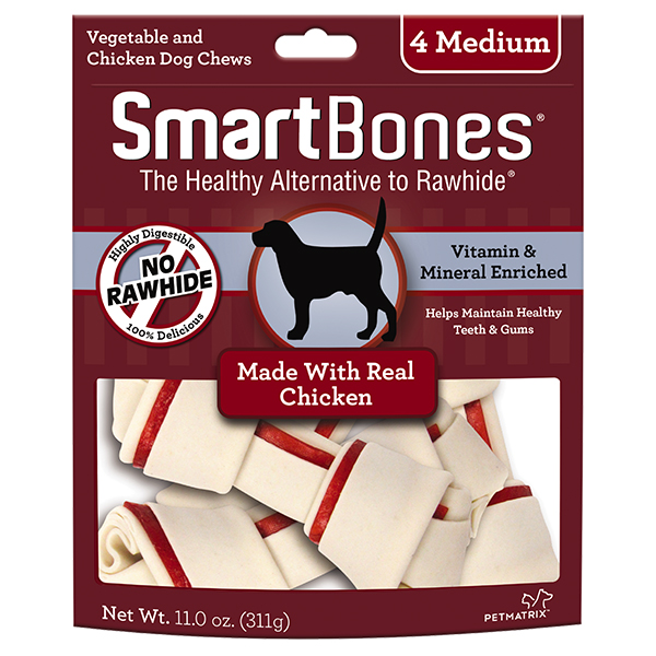 SmartBones® have all the benefits of a rawhide chew without the rawhide. No rawhide SmartBones® are made with real chicken and wholesome vegetables for a scrumptious taste dogs can't resist.