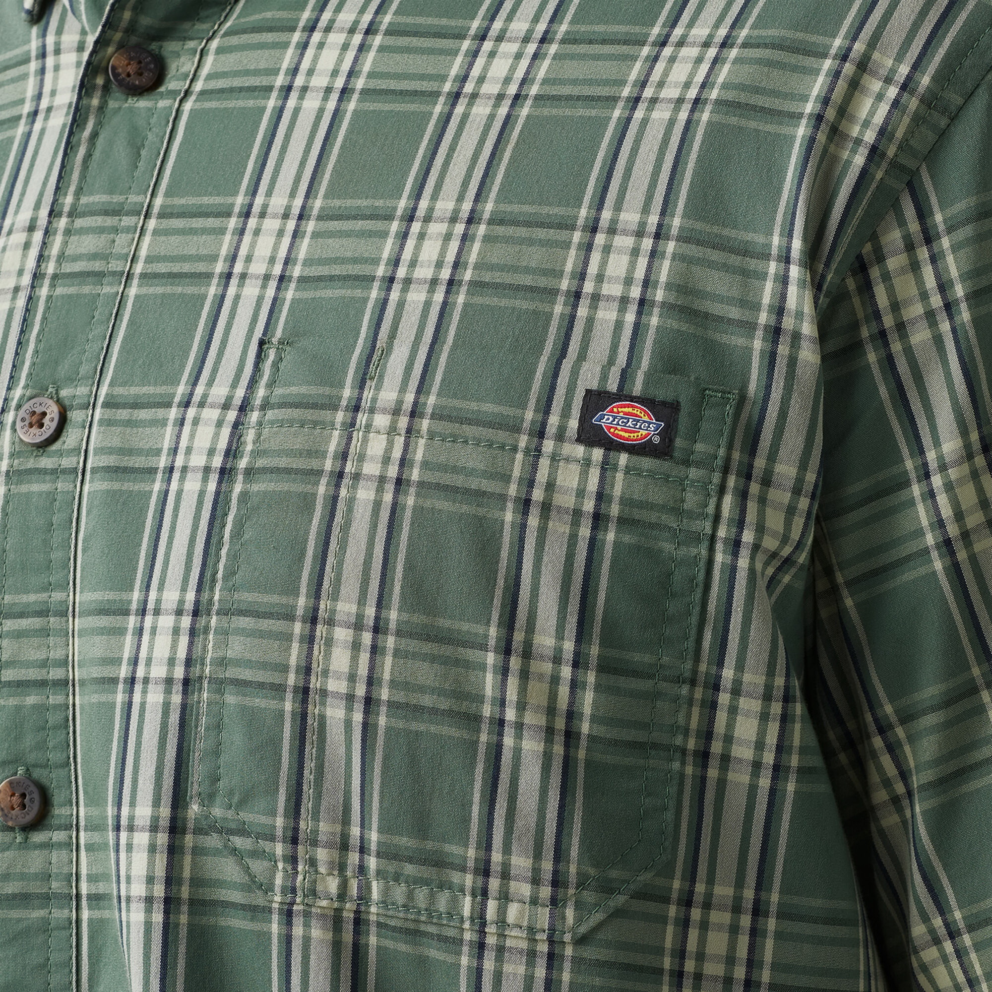 Dickies WS551-A2T-M Shirt, M, Cotton/Polyester/Spandex, Clear Blue High Plains Plaid, Dickies Logo Label, Button-Down